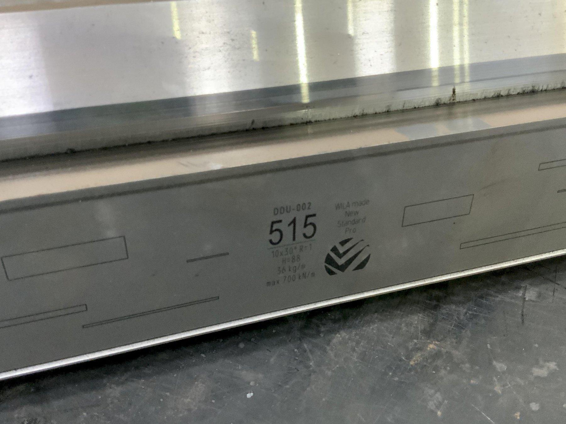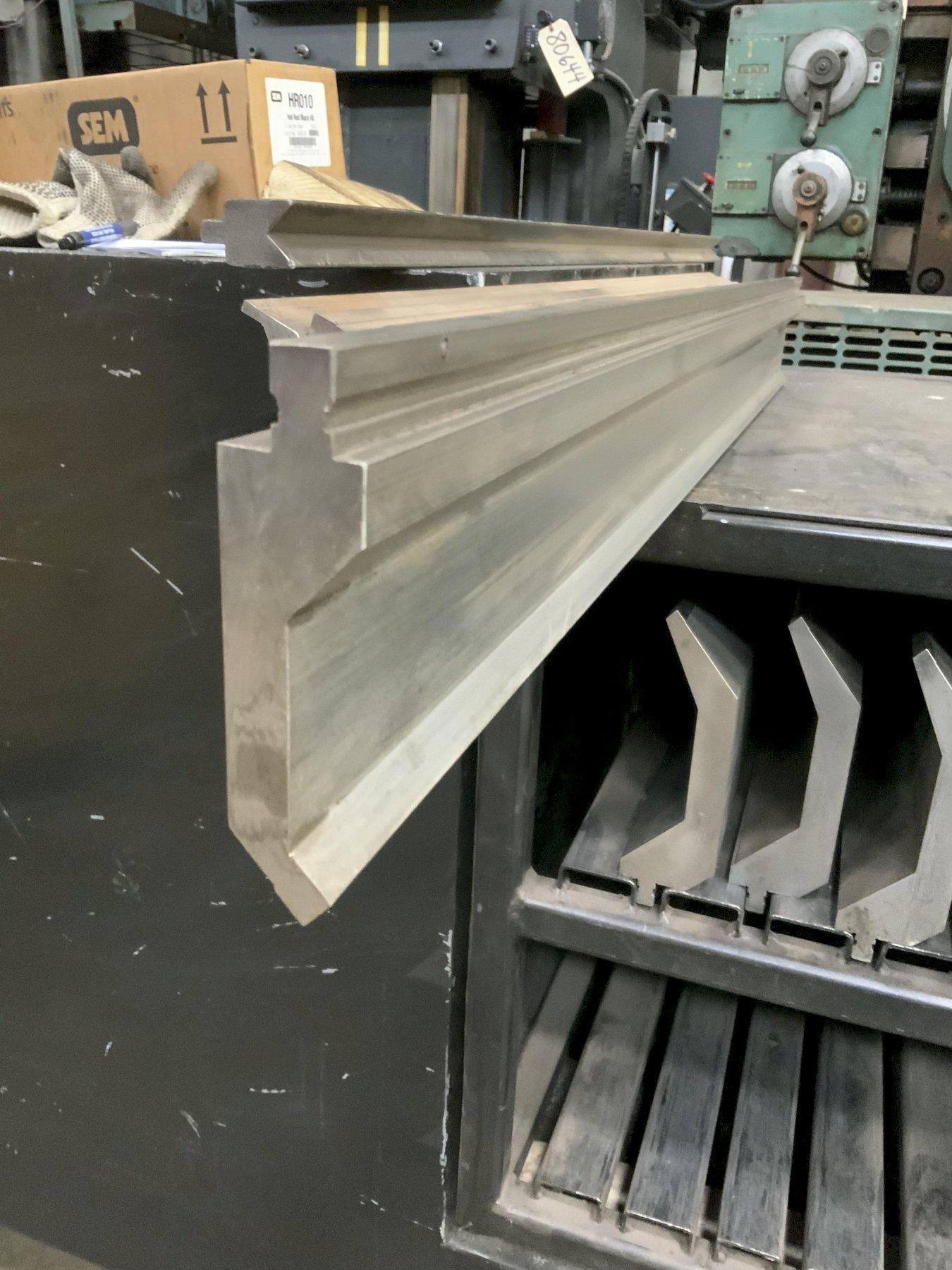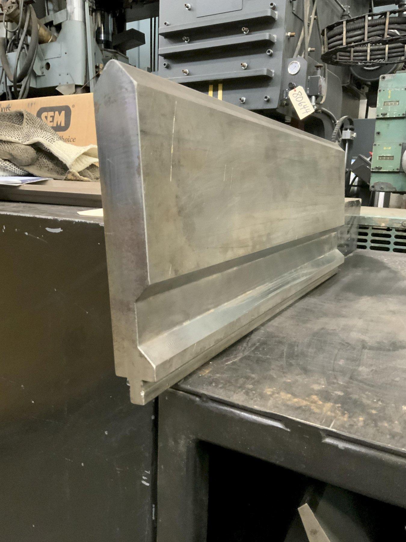 MODEL .............................. BUI-882 GOOSENECK SECTIONS ........................... 7 LENGTH PER SECTION ................. 20.5" WORKING HEIGHT ..................... 8" TIM ANGLE @ ........................ 80 DEGREES RADIUS R ........................... 1 MM CNC DEEP HARDENED .................. > 4MM/52-60HRC MAX LOAD PER FT .................... 29 TON 4 SECTION MALE WIL A DIE ........... 24",23-1/4",22-1/4" & 12-14/" HEIGHT ............................. 8-1/2" X 1-3/8" WIDE 4 SECTION OF WILA GOOSENECK ........ 48", 45",45" & 41-1/2" HEIGHT ............................. 4-1/2" 4 SECTION OF WILA FILLER BLOCK ..... 24" WIDE ............................... 1-7/8" X 2-1/2" HIGH WILA HEMMING DIE ................... 20-1/2" 4 SECTION WILA FEMALE DIE .......... 30" LONG 2-1/2: WIDE ,2" HIGH 2' OPENING 1 FEMALE DIE ....................... 48" LONG 6" WIDE 5-1/4" HIGH 5" OPENING MISCELLANEOUS ...................... DIE ACUTE GOOSENECK & V DIE |