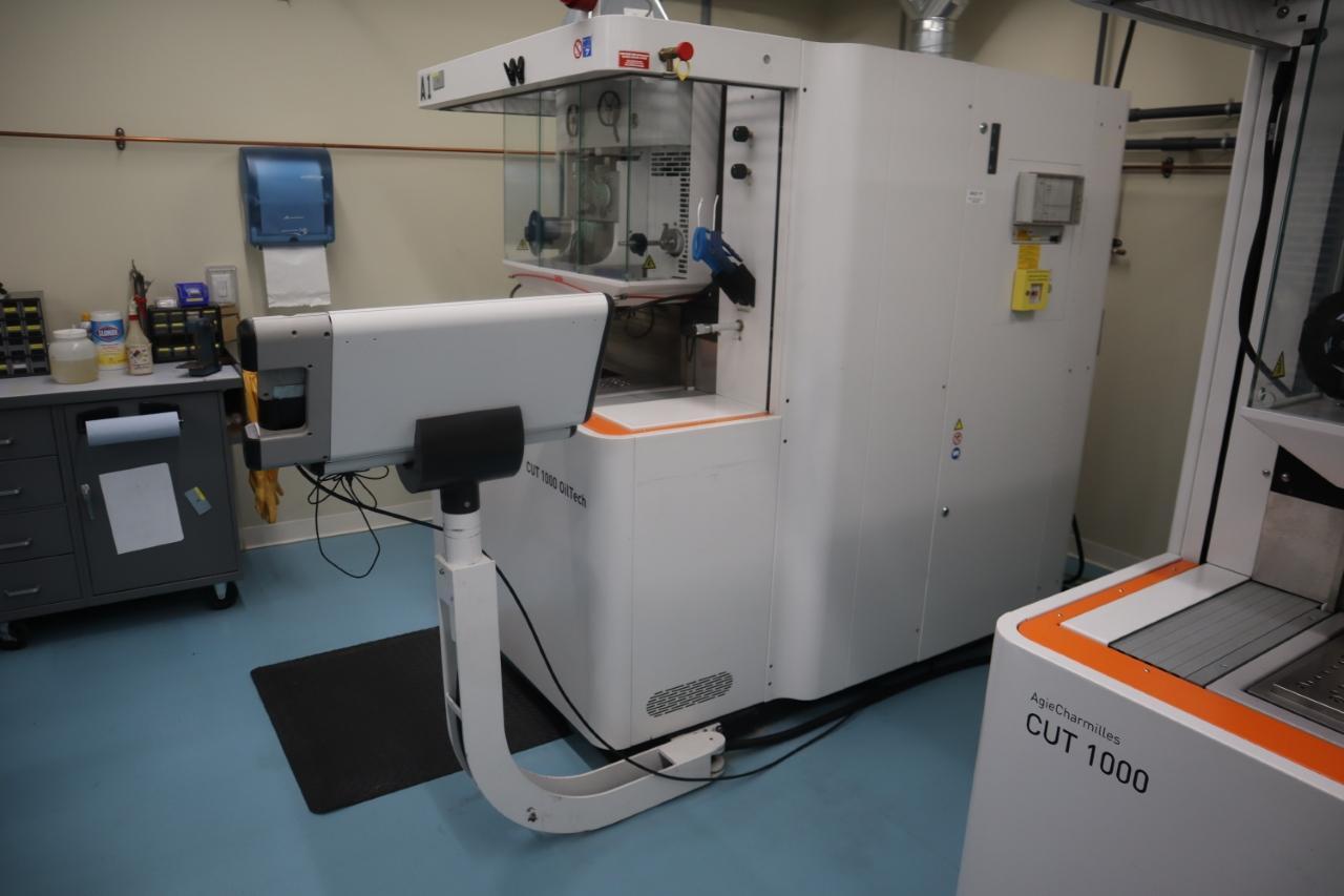Control: Agie Charmilles CNC Control Max Workpiece Size: 11.81" x 7.87" x 3.14" Travels (X,Y,Z): 8.66" x 6.3" x 3.93" UV Travels: +/- 1.57" Taper Angle: +/- 3 Degrees for 3.14" Dimensions of Table: 21.65" x 13.39" Max Workpiece Weight: 77 Lbs. Wire Diameter: Dual Spool Auto Wire Thread: .003 - .008" Wire Diameter Wire Speed: 2.36 - 11.81 Inches Per Second Rapid Traverse Rate : .04 - 111 IPM Dielectric Fluid Capacity: 110 Gallons Description: The AgieCharmilles Cut 1000 CNC Wire EDM is an ultra-precision machining solution engineered for industries that demand exceptional accuracy, including medical, aerospace, electronics, and high-end moldmaking. Built with Swiss precision, the Cut 1000 delivers extremely tight tolerances, superior surface finishes, and outstanding repeatability using advanced EDM technology and intuitive AC Cut control. Its high-stability machine structure, optimized wire threading system, and smart automation options make it ideal for micro-machining, fine-detail work, and complex geometry. For manufacturers seeking top-tier EDM performance, the AgieCharmilles Cut 1000 provides reliable operation, fast processing, and exceptional part quality. Equipped With: IPG-VO Generator for Inert Oil Dielectric Fluid Machining, Fire Suppression System,AWC Dual Spool Automatic Wire Threader, Drop Tank, Fully Digitized Pulse Control, Advanced Wire Offset, Wire Bending Control, Integrated Vision Unit, Auto-Scanning of the Form, Remote Control Pendant, Filter System, Chiller, Transformer Electrics: 400 Volt, 3 Phase - Compes with Multi-Tap Transformer for 208-240/ 440 VOlt |