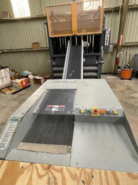 All specifications are assumed to be correct but must be confirmed by the purchasing entity.,PRODUCTION CAPACITY: (1 operator) Manufacturer Rated – 1,250 pounds / hour FRM averages 500 – 600 pounds / hour Actual production is limited by configuration of paper being shredded. FRM produces 1 bale (1,300 pounds) per 2.5 hours of shredder run time Shredder is designed to run 24 / 7 if needed All specifications are assumed to be correct but must be confirmed by the purchasing entity.,ITEM 2 Marathon 7230HD vertical baler (creates 2’6” x 3’6” x 6’ bale, tied with 7 bale wires) All specifications are assumed to be correct but must be confirmed by the purchasing entity. |