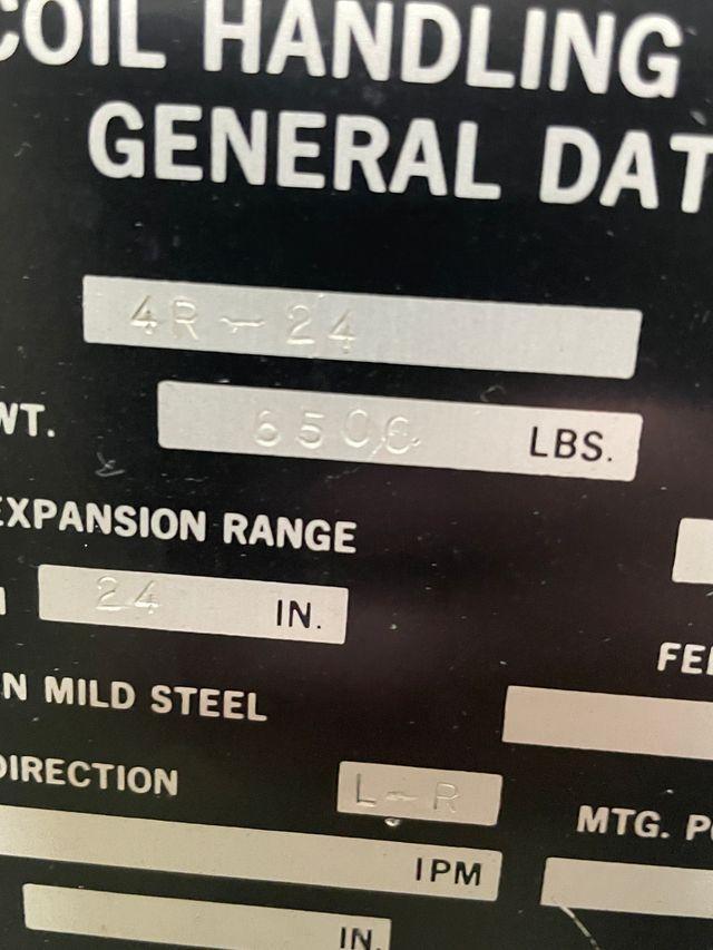 8,000 LBS X 24" X .125" DALLAS UNCOILER COIL REEL, STRAIGHTENER, FEED...