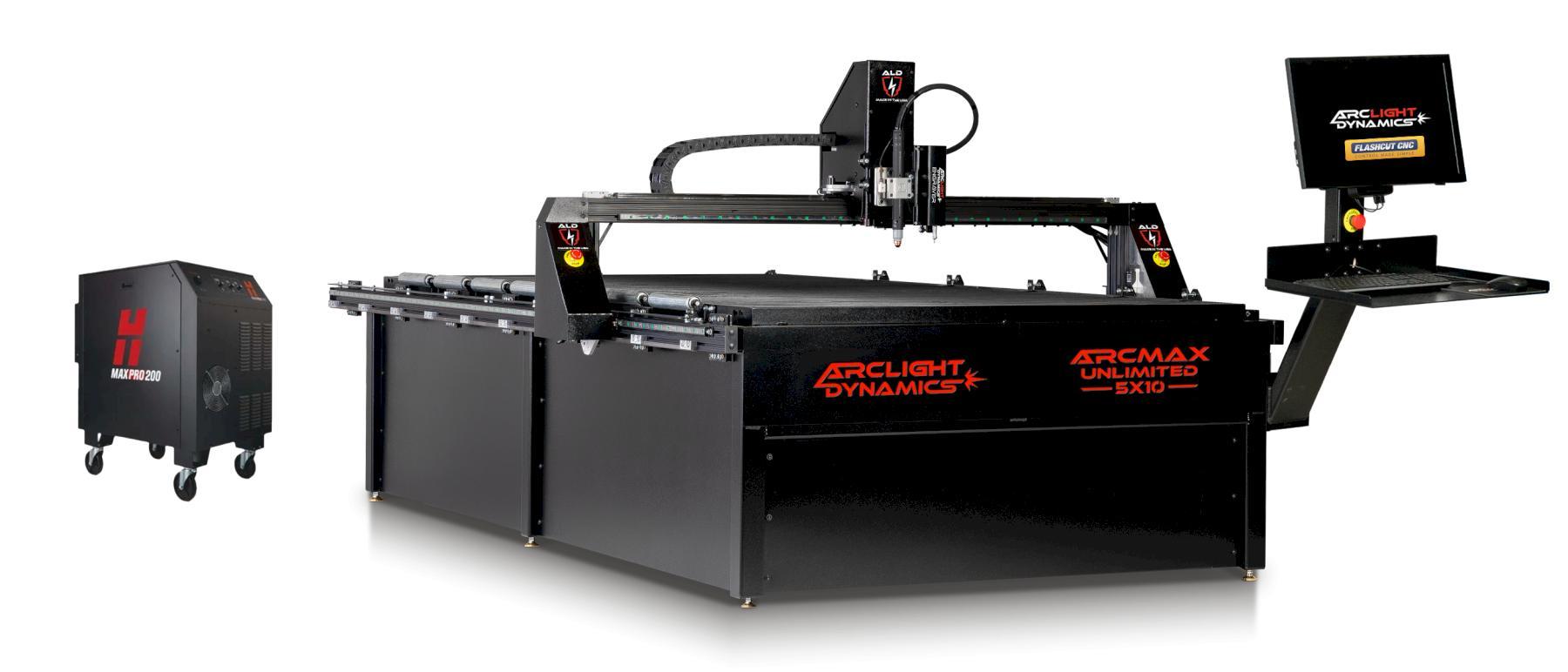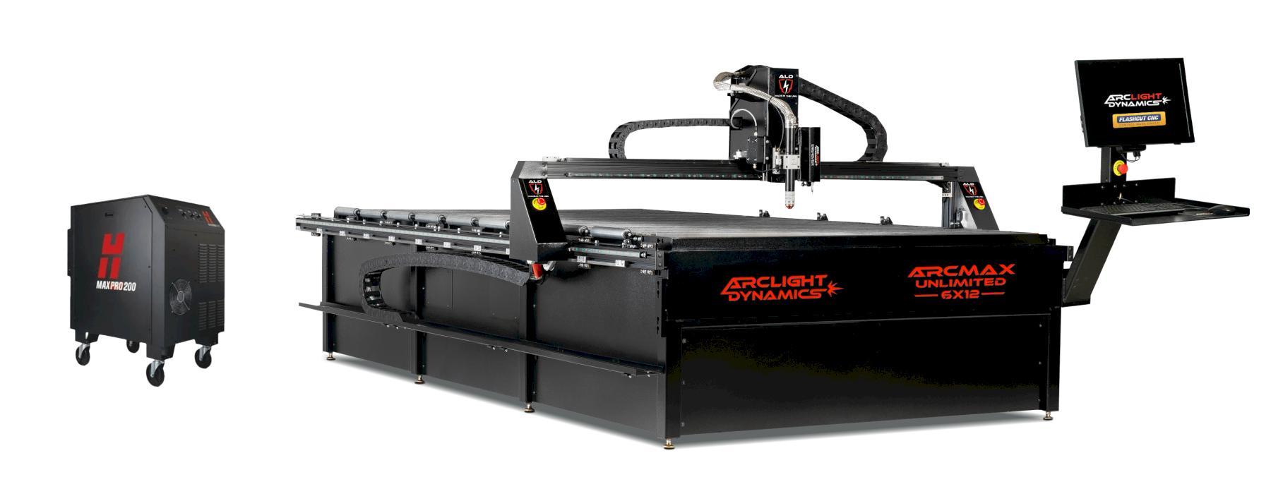 CNC Plasma Cutting System with Windows, Mini Computer Control, FlashCut Pro Integrated CAD / CAM / CNC, Integrated Stingray Torch Height Control, Magnetic Torch Mount, 7” Gantry Clearance, Available in 4’ X 8’, 5’ X 10 & 6’ X 12’ Table Sizes.