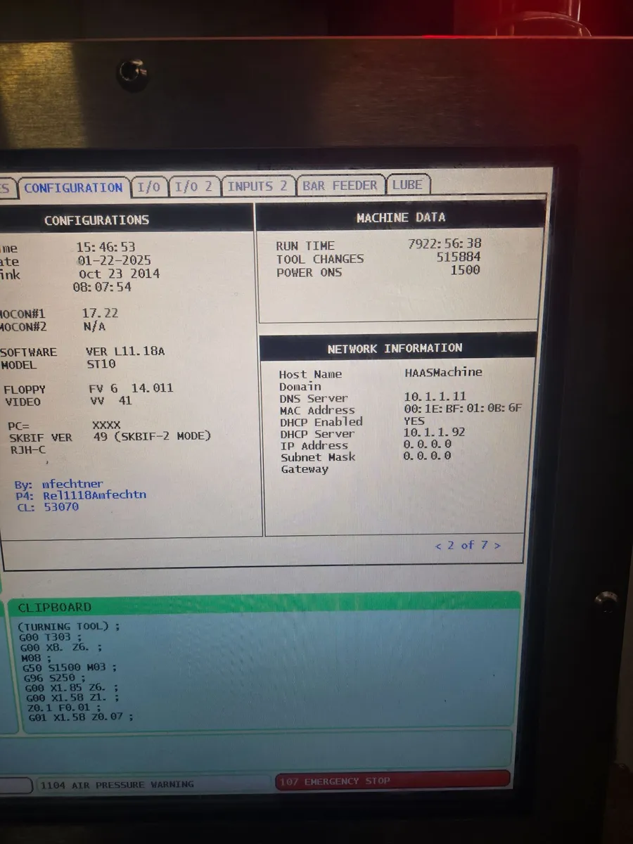 Haas ST-10, CNC Lathe, 2014 – Tailstock w/ Hydraulic Quill, Inspection Report,...