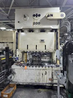 NEW ..................................... 1982 MODEL ................................... OBW 200 CAPACITY ................................ 220 TONS STROKE .................................. 9.8" (250 MM) ADJUSTMENT .............................. 4.72" (120 MM) DIE HIEGHT TO BOLSTER ................... 19.69" (500MM) SPEEDS .................................. 30 TO 50 SPM RAM ..................................... 72.83" X 25.59" (1850 X 650 MM) BOLSTER ................................. 94.49" X 31.5" X 5.12" (2400 X 800 X 130 MM) AIR CLUTCH .............................. YES GAP FRAME ............................... YES |