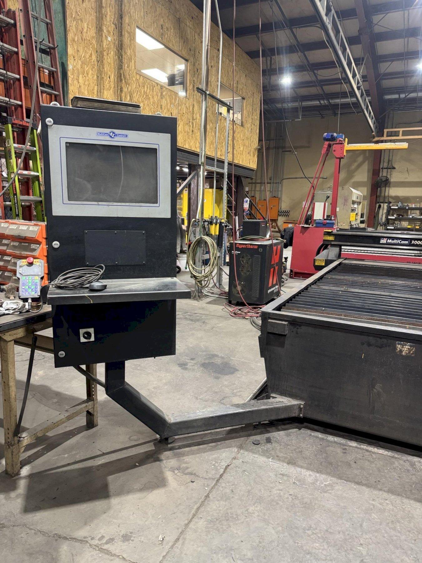 All specifications are assumed to be correct but must be confirmed by the purchasing entity.,Max Cut Thickness (Mild Steel): Production Pierce: ~1‑1/4″ Maximum Cutting Capacity: ~1‑1/2″ All specifications are assumed to be correct but must be confirmed by the purchasing entity.,Max Cut Thickness (Stainless Steel): Production Pierce: ~3/4″ Maximum Cutting Capacity: ~1″ All specifications are assumed to be correct but must be confirmed by the purchasing entity.,Max Cut Thickness (Aluminum): Production Pierce: ~3/4″ Maximum Cutting Capacity: ~1″ All specifications are assumed to be correct but must be confirmed by the purchasing entity.,Equipped With All specifications are assumed to be correct but must be confirmed by the purchasing entity.,MultiCam EZ Control Hypertherm HPR130XD Plasma Power Supply Brushless AC Servo Drives Automatic Torch Height Control (ATHC) All Available Manuals All specifications are assumed to be correct but must be confirmed by the purchasing entity. |