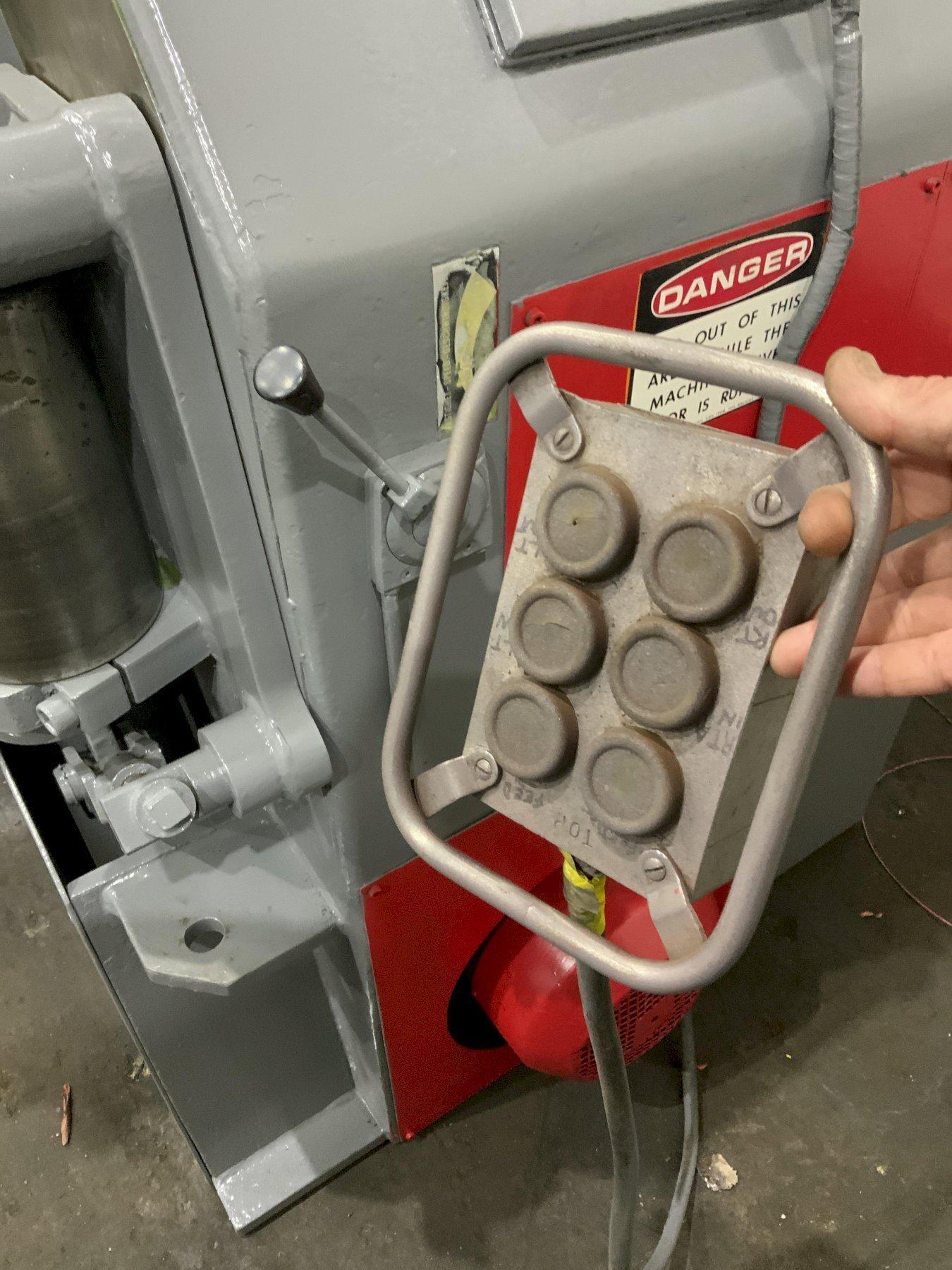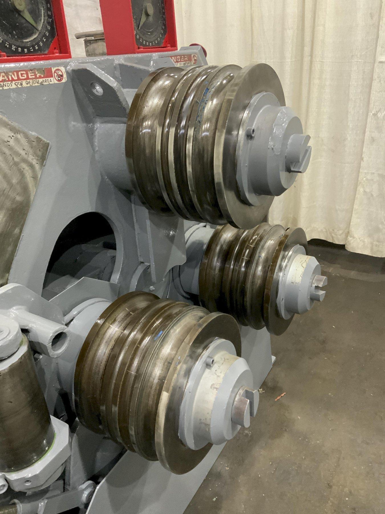 SERIAL ............................. 854600 MODEL............................... #R-5 YEAR NEW ........................... 1989 CAPACITY ANGLE LEG OUT ............. 4-1/2" X 4-1/2" X 1/2" MINIMUM DIAMETER LEG OUT ........... 50" CAPACITY ANGLES LEG IN ............. 3-1/2" X 3-1/2" X 1/2" MINIMUM DIAMETER LEG IN ............ 60" SMALLEST ANGLE ROLLED .............. 1-1/2" X 1-1/2" X 1/4" CAPACITY FLAT ON FLAT .............. 8" X 1" MINIMUM FLAT DIAMETER .............. 36" CAPACITY SQUARE BAR ................ 2-1/4" CAPACITY ROUND BAR ................. 2-1/2" CAPACITY PIPE ...................... 4" MINIMUM PIPE DIAMETER .............. 48" DIAMETER OF BENDING ROLLS .......... 14-1/4" ROLL SPEED (VARIABLE) .............. 0 TO 23 FPM HYDRAULIC ROLL ADJUSTMENT .......... YES GUIDE ROLLS ........................ YES PIPE TOOLING ........................ 3/4",1-1/2,2",2-3/4"& 4" HORSEPOWER MAIN MOTOR .............. 10 |