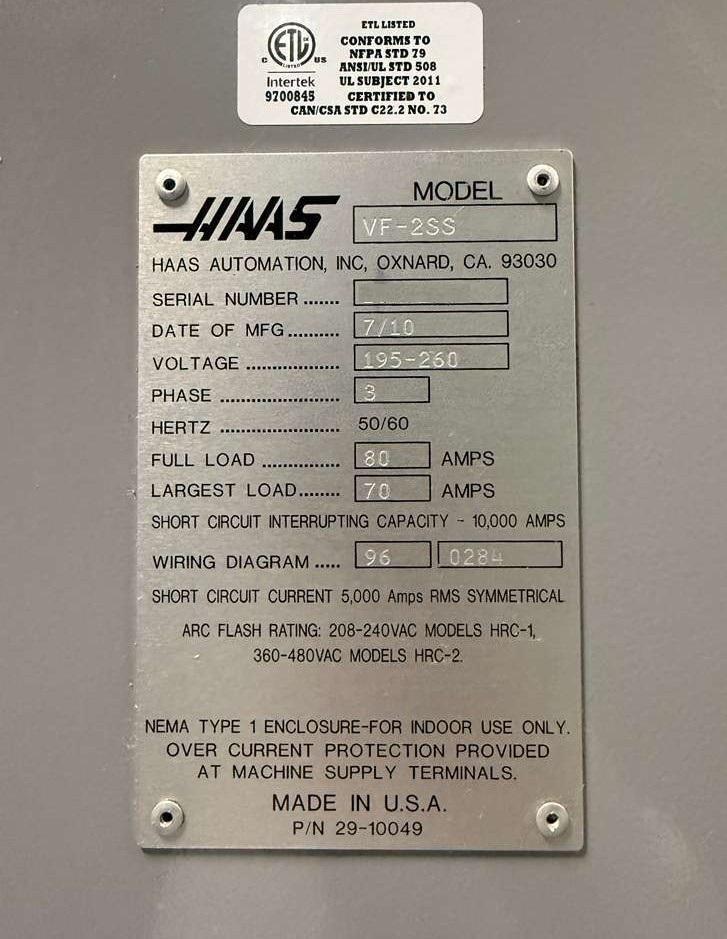 Haas VF-2SS CNC Vertical Machining Center – 12,000 RPM Mill