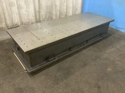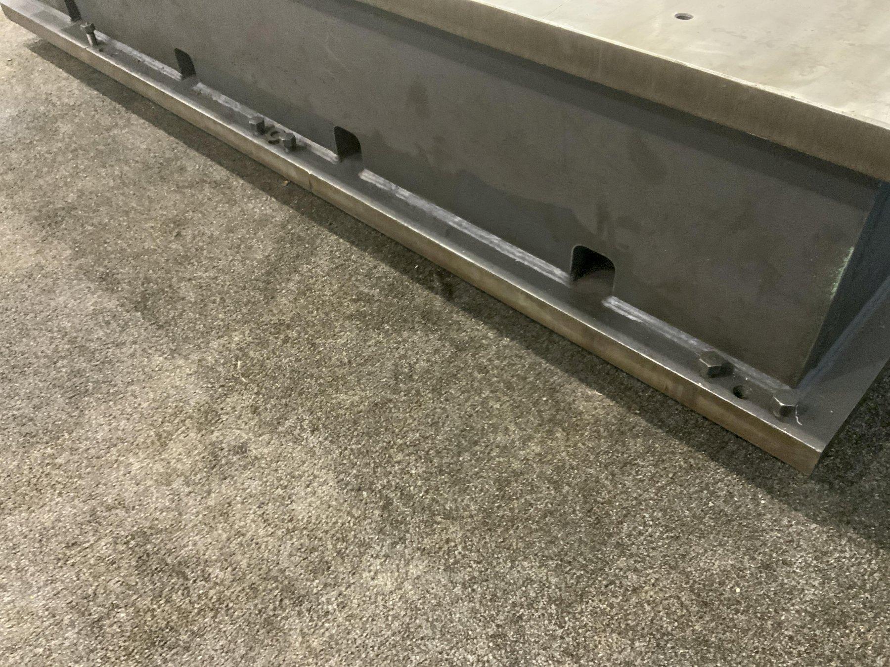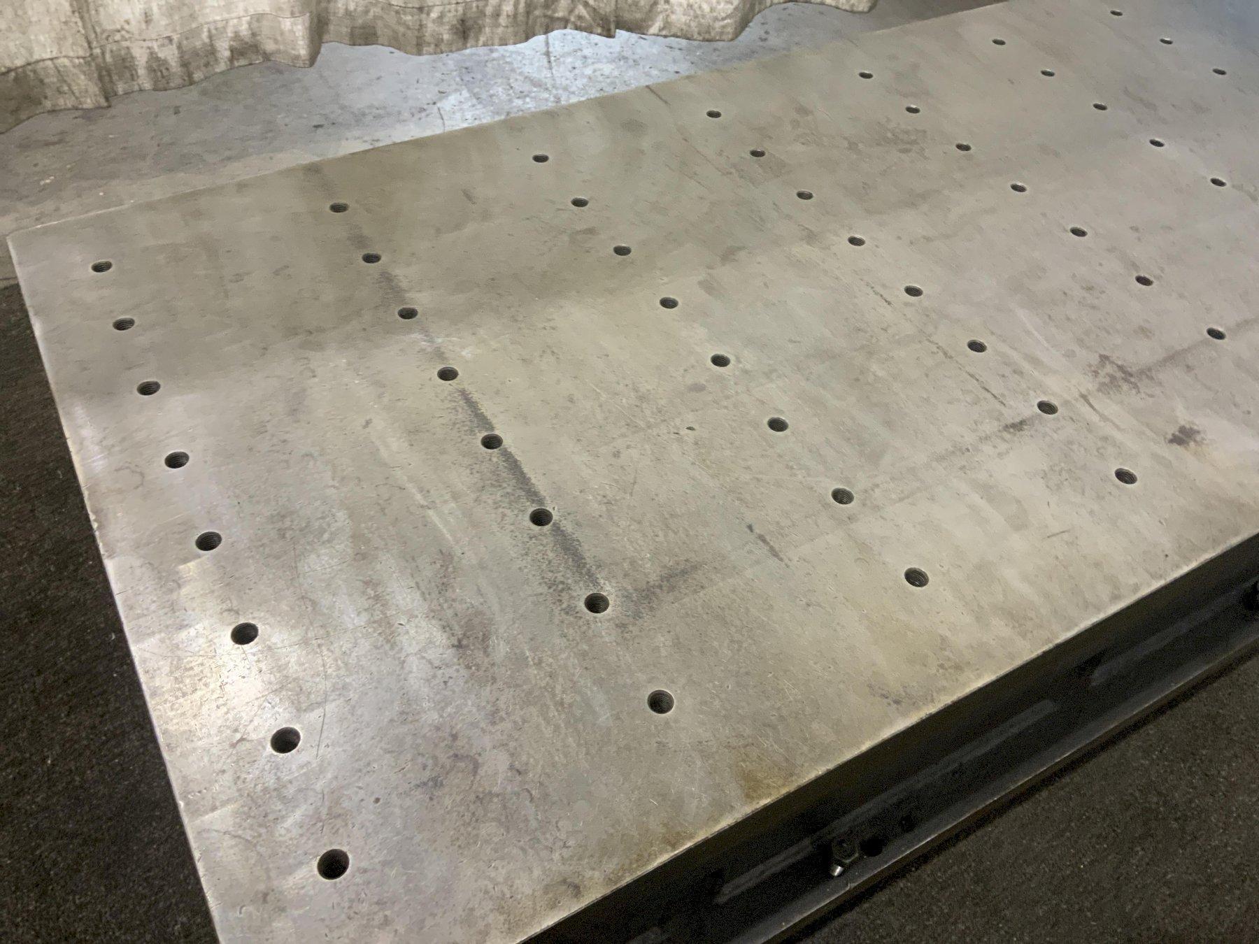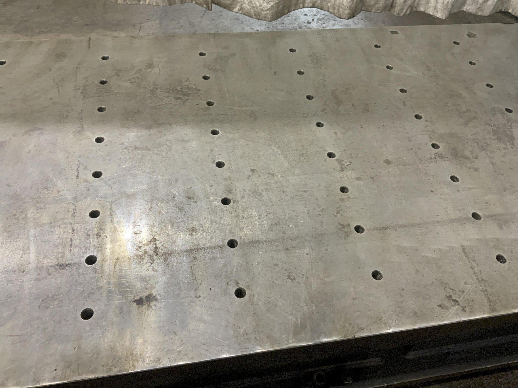 LENGTH OF PLATE ...................... 98" WIDTH OF PLATE ....................... 38" PLATE HEIGHT ......................... 20" T SLOTS ON SIDE ...................... 2 T SLOT CENTERS ....................... 8 DRILL & TAPPED HOLES ................. 80 DRILL & TAPPED HOLES .............................. 80 HOLE CENTERS ACROSS .................. 4" HOLE CENTER LENGTH DIRECTION ......... 8" HOLE DIAMETERS ....................... 3/4 MACHINED TOP ......................... YES LEVERLER ON SIDES .................... YES |