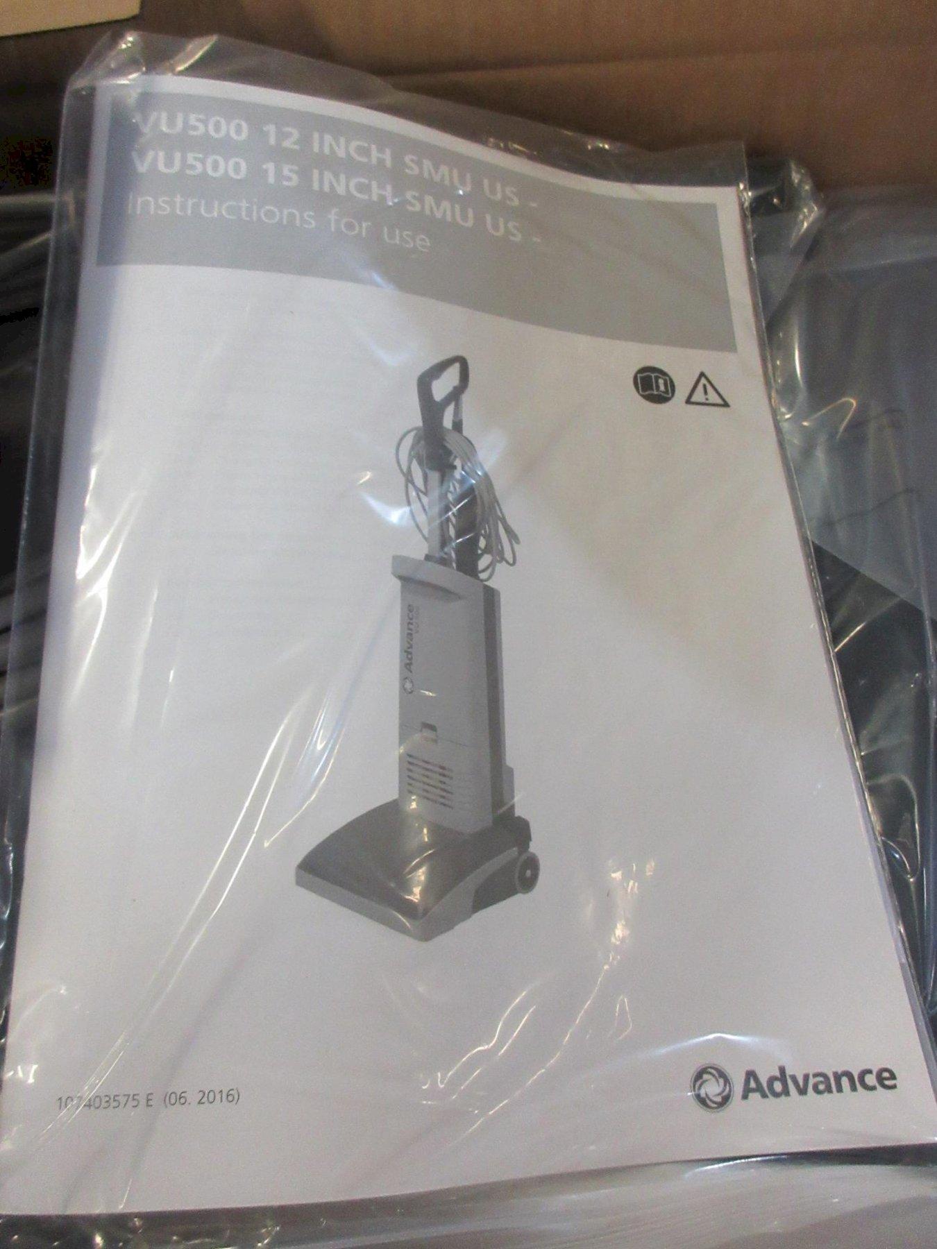 Lot 104: Nilfisk GD 10 Back Pack Vacuum, (3) Advance VU500 15" SMU Upright Vacuums and 2-Shelf Cart Equipped With: 1-Nilfisk GD 10 Back Pack Vacuum, 3-Advance VU500 15" SMU US Upright Vacuums and 1-48"x24"x34" Cart Electrics: 110V Manufacturer: Nilfisk Model: N/A Main Unit Approx Weight: 0.00 lbs Main Unit Dimensions (in inches): Length: 0.00" Width: 0.00" Height: 0.00" Seller Company: Nilfisk Inc Seller Contact: TOM DRUMMY Phone: (248) 709-3733 Item Location: Nilfisk Inc, 9435 Winnetka Ave N , Brooklyn Park, MN 55445 Location Contact: TOM DRUMMY Phone: (763) 745-3500 Inspection Date & Time: By Appointment Normal Business Hours Monday-Friday Dock Door: 12' x 14' Ground Level Door Removal Dates and Times: This item must be removed between Tuesday, March 17, 2026 and Friday, March 27, 2026