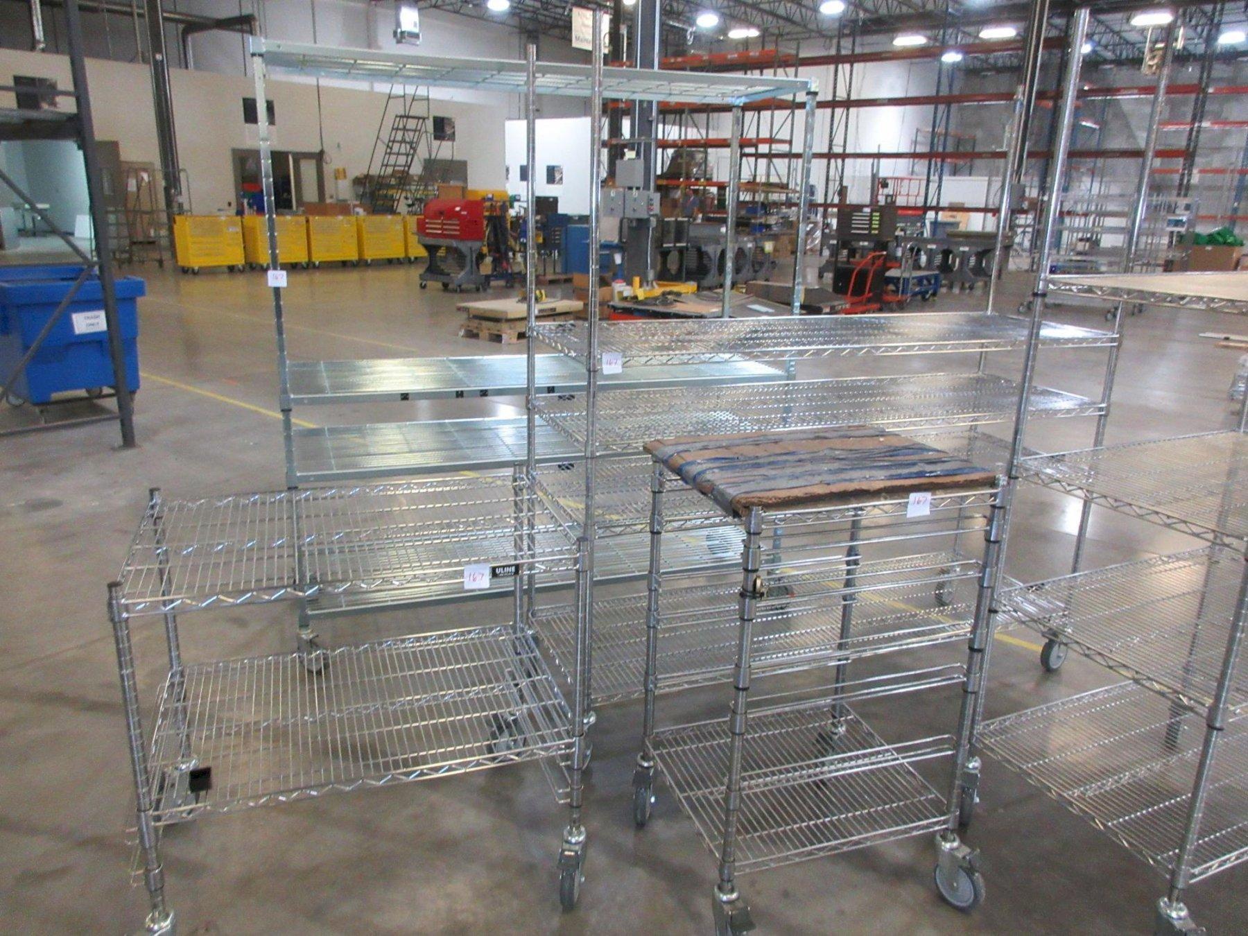 Lot 167: Uline Rolling Metal Wire Carts and assorted other brands, (5) Total Equipped With: (1) 36" x 24" x 78", (1) 72" x 24" x 78", (1) 36" x 24" x 34", (1) 24" x 21" x 41, (1) 71" x 23" x 72" Manufacturer: Uline Model: N/A Main Unit Approx Weight: 0.00 lbs Main Unit Dimensions (in inches): Length: 0.00" Width: 0.00" Height: 0.00" Seller Company: Nilfisk Inc Seller Contact: TOM DRUMMY Phone: (248) 709-3733 Item Location: Nilfisk Inc, 9435 Winnetka Ave N , Brooklyn Park, MN 55445 Location Contact: TOM DRUMMY Phone: (763) 745-3500 Inspection Date & Time: By Appointment Normal Business Hours Monday-Friday Dock Door: 12' x 14' Ground Level Door Removal Dates and Times: This item must be removed between Tuesday, March 17, 2026 and Friday, March 27, 2026