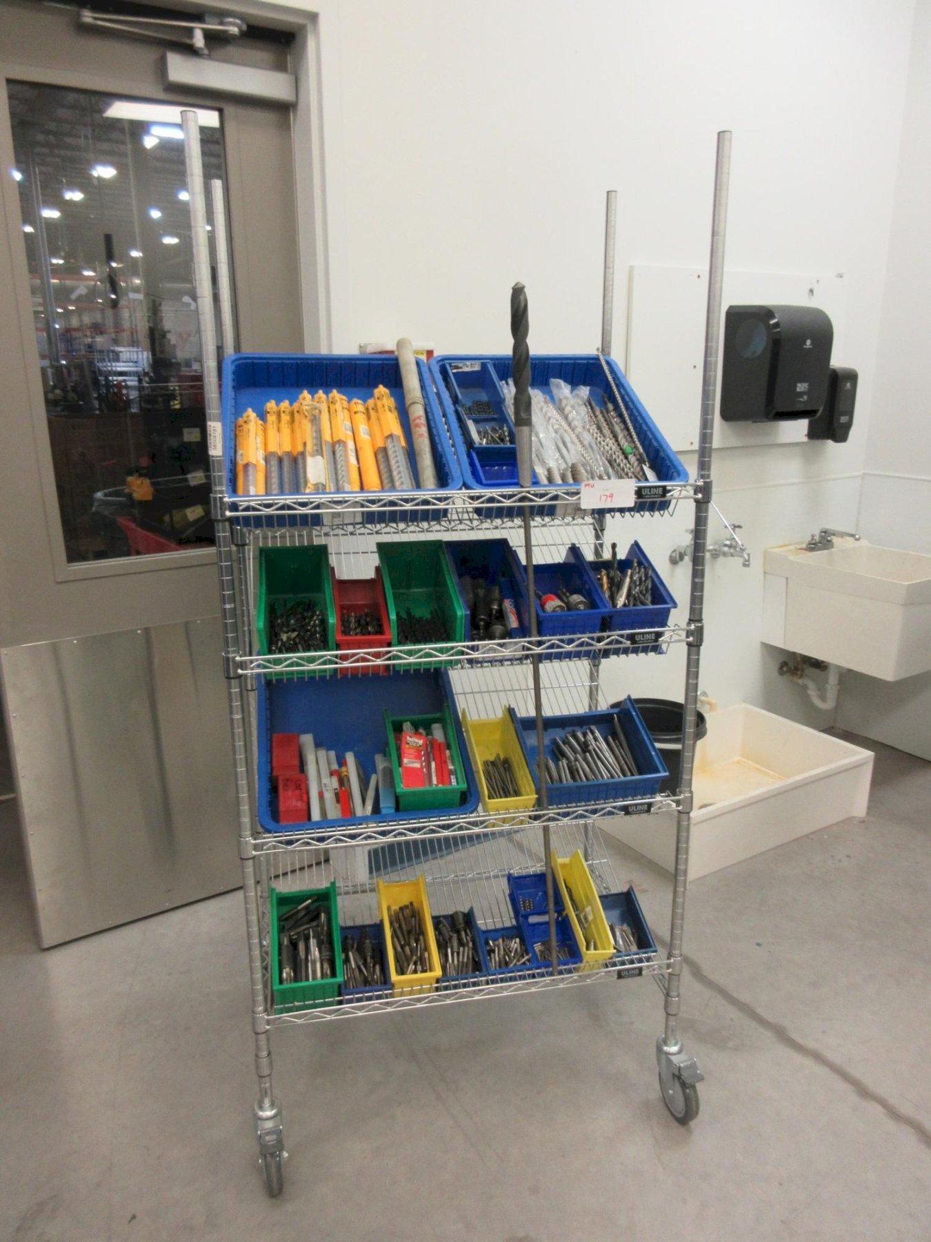 Lot 179: Drills, Large Assortment including, Hammer Drills, Reamers, Counter Sinks Taps On MORE on Uline 4-Shelf 36" x 24" x 78" Metal Wire Rolling Cart Manufacturer: Generic Model: Generic Main Unit Approx Weight: 0.00 lbs Main Unit Dimensions (in inches): Length: 0.00" Width: 0.00" Height: 0.00" Seller Company: Nilfisk Inc Seller Contact: TOM DRUMMY Phone: (248) 709-3733 Item Location: Nilfisk Inc, 9435 Winnetka Ave N , Brooklyn Park, MN 55445 Location Contact: TOM DRUMMY Phone: (763) 745-3500 Inspection Date & Time: By Appointment Normal Business Hours Monday-Friday Dock Door: 12' x 14' Ground Level Door Removal Dates and Times: This item must be removed between Tuesday, March 17, 2026 and Friday, March 27, 2026