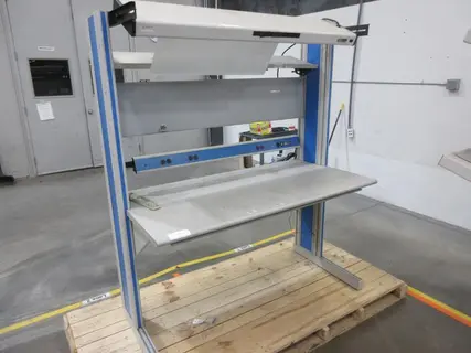 Lot 197: IAC Industries Work Station with Grounding Cable, Overhead Work Light, Power Strip Manufacturer: Generic Model: Generic Main Unit Approx Weight: 0.00 lbs Main Unit Dimensions (in inches): Length: 60.00" Width: 36.00" Height: 72.00" Seller Company: Nilfisk Inc Seller Contact: TOM DRUMMY Phone: (248) 709-3733 Item Location: Nilfisk Inc, 9435 Winnetka Ave N , Brooklyn Park, MN 55445 Location Contact: TOM DRUMMY Phone: (763) 745-3500 Inspection Date & Time: By Appointment Normal Business Hours Monday-Friday Dock Door: 12' x 14' Ground Level Door Removal Dates and Times: This item must be removed between Tuesday, March 17, 2026 and Friday, March 27, 2026