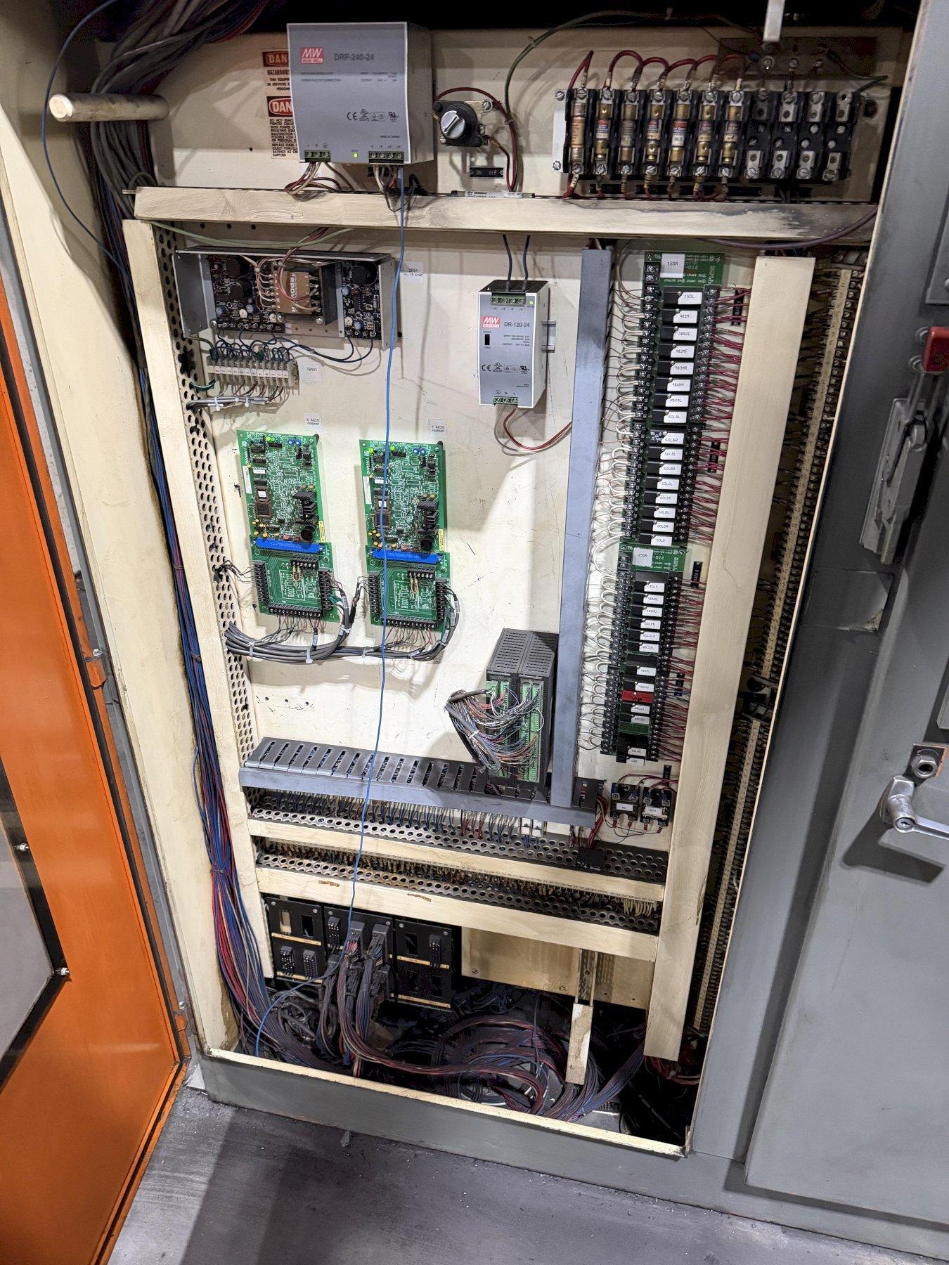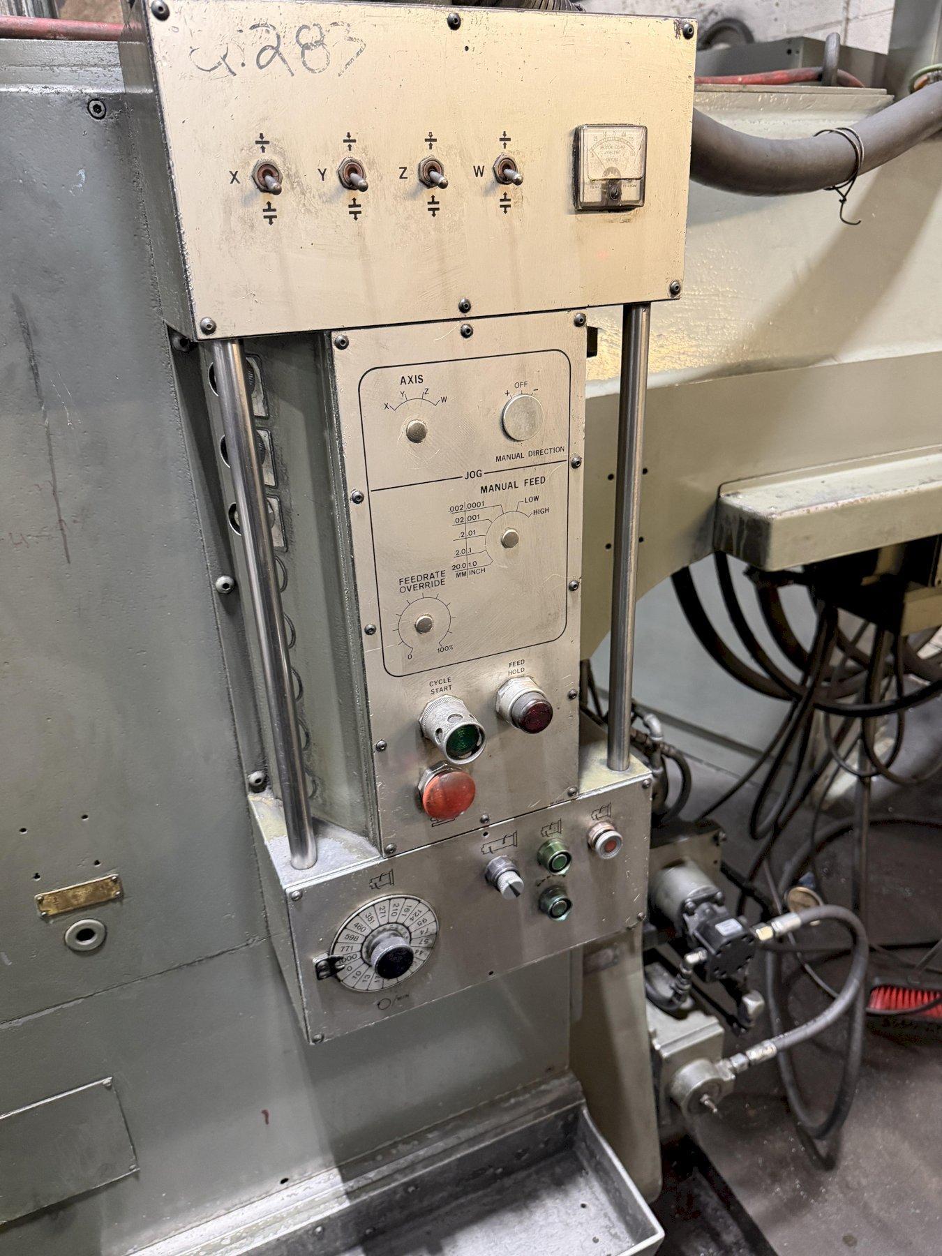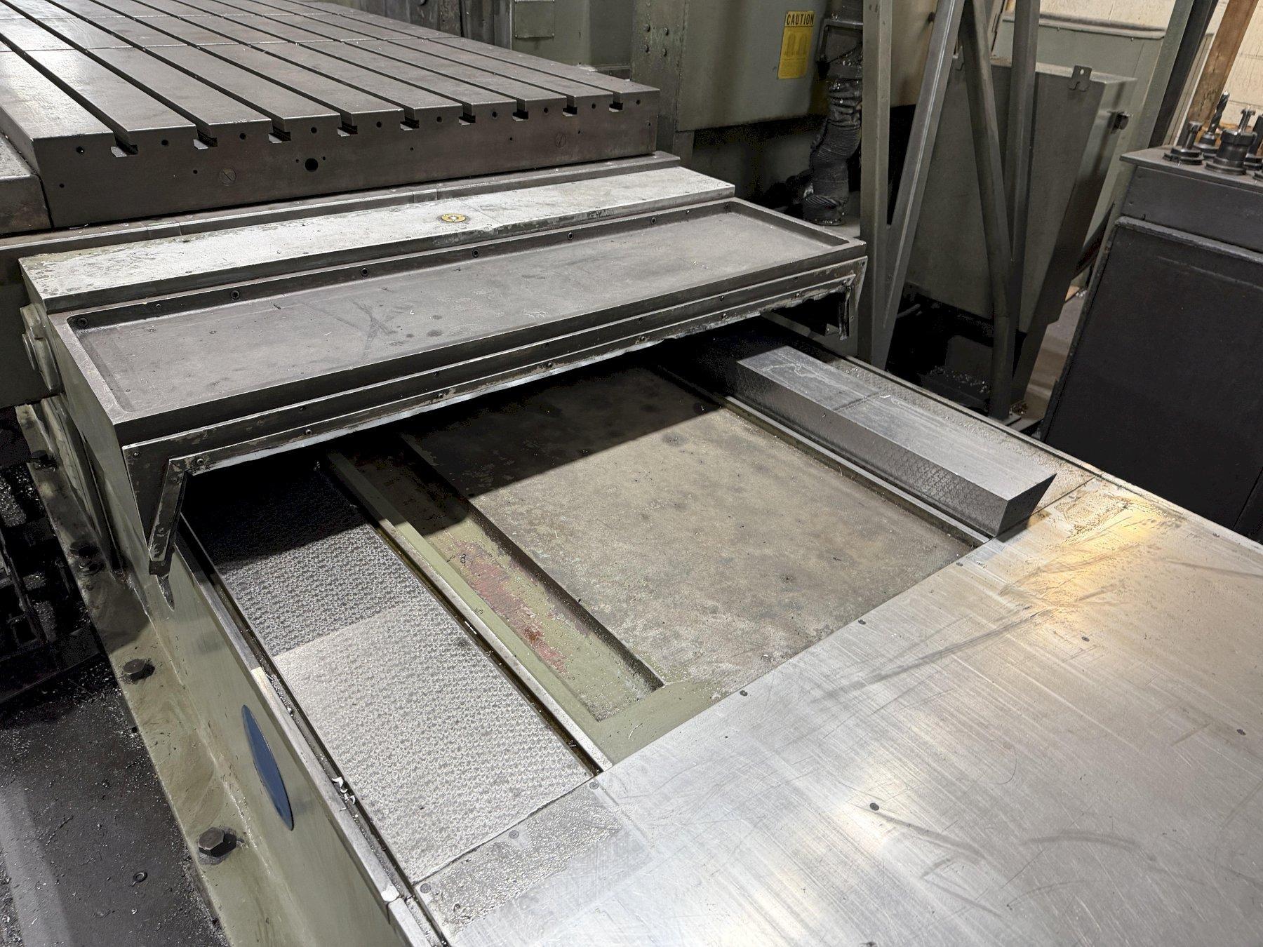 SPINDLE SIZE.......................: 5" TRAVELS: X AXIS.............................: 120" Y AXIS.............................: 72" Z AXIS.............................: 24" SPINDLE TRAVEL.....................: 24" TABLE DIMENSIONS...................: 50" X 120" SPINDLE TAPER......................: 50 SPINDLE SPEEDS.....................: 19 - 1,000 RPM (19) # OF BAR FEEDS.....................: .0034" - .0365" (8) FEED RATES.........................: .5" - 36" (16) CONTROL............................: FAGOR MACHINE REBUILT IN 2004 MACHINE NEW CONTROL IN 2010. |