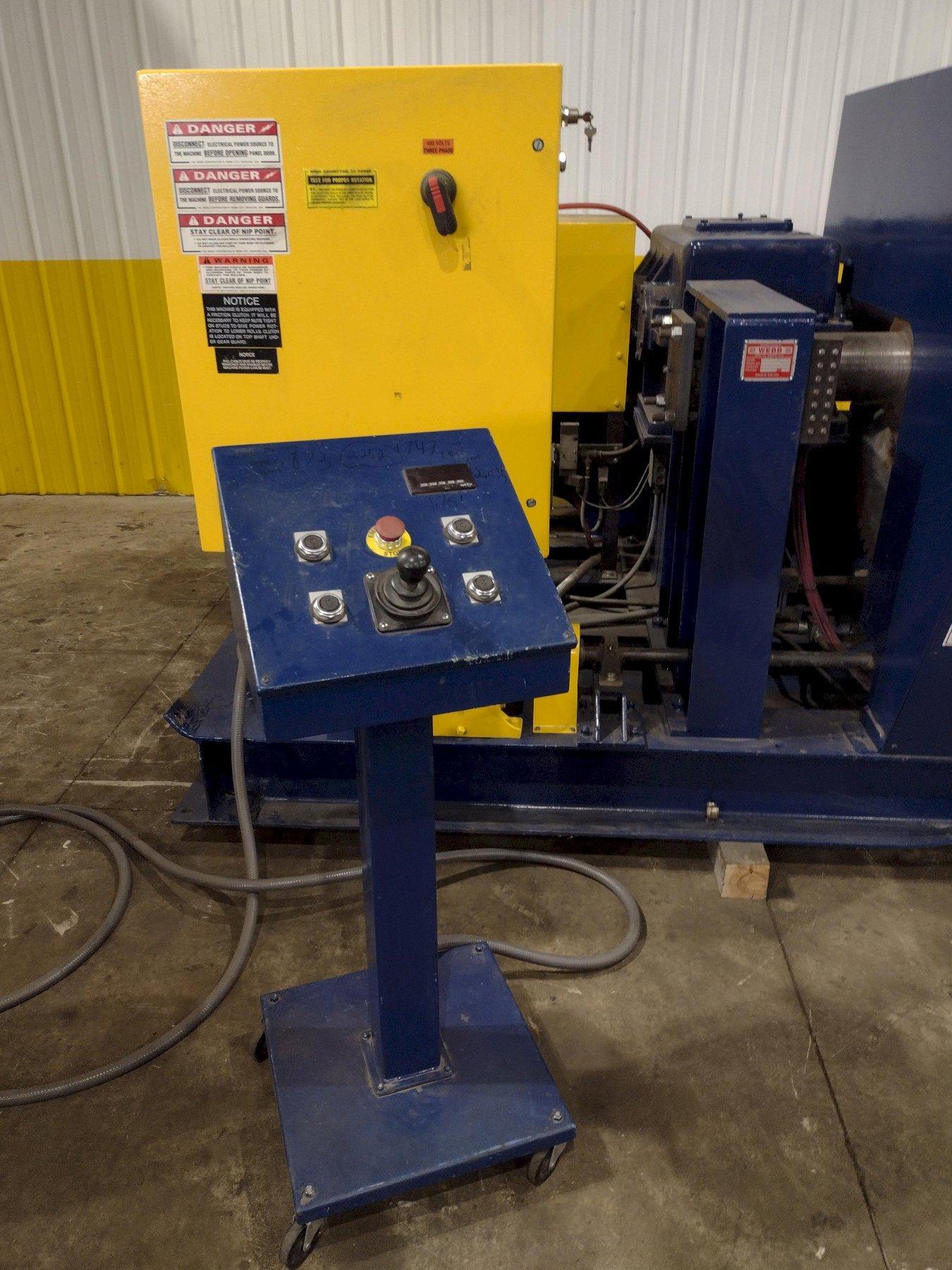MODEL ......................... 9L-1312 CAPACITY (MILD STEEL) ......... 1/2" MAX FORMING LENGTH ............ 12'2" ROLL DIAMETER ................. 13" KROLLING SPEED (VAR) .......... 6 TO 12 FPMS MOTOR ......................... 20 HP UPGRADED CONTROLS AIR DROP END POWER FRONT PINCH ROLL ADJUSTMENT POWER REAR ROLL ADJUSTMENT |