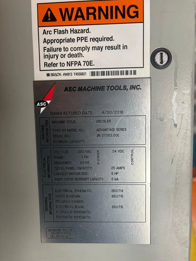 20,000 LBS X 60" ASC MODEL 20/25W DOUBLE END POWERED UNCOILER WITH...
