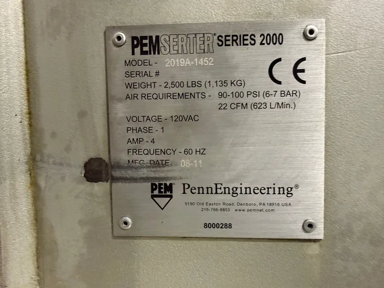 OverviewDescriptionPEMSERTER Series 2000A 8 Ton Insertion Press Touchscreen 2011’ #8155 PEMSERTER Series 2000A 8 Ton Insertion Press Touchscreen 2011’ #8155