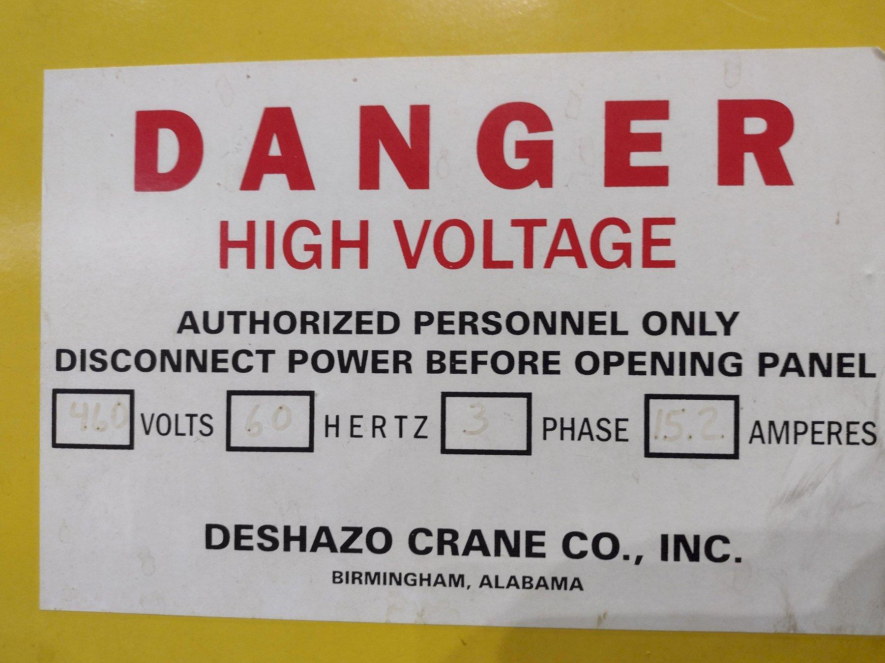 3 TON x 35'8" DESHAZO OVERHEAD BRIDGE CRANE. STOCK # 0661825