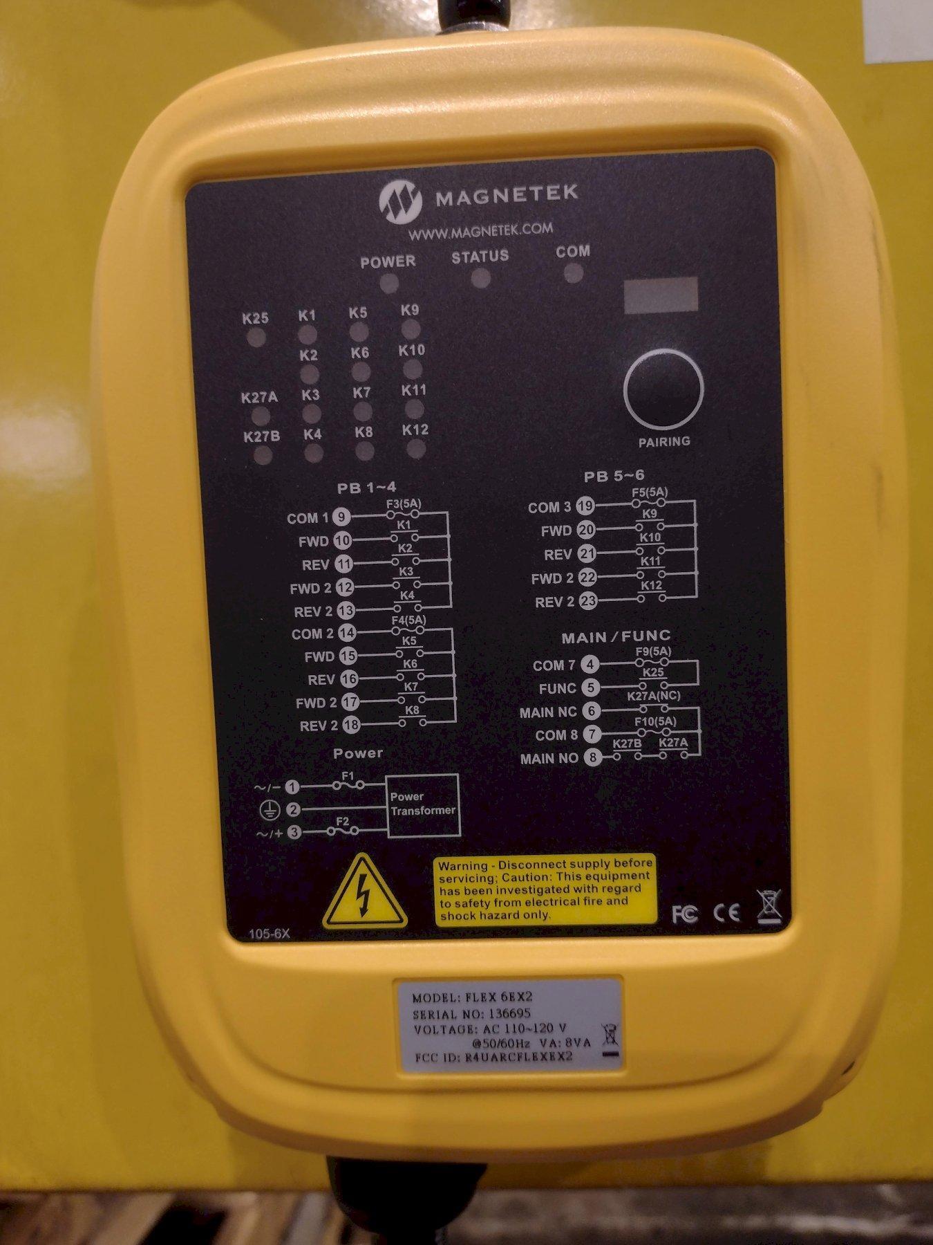 NEW 02/2001 CATALOG 45B00730 CAPACITY 7.5 TON / 15,000 LBS TOP RUNNING BRIDGE SINGLE GIRDER MOTORIZED END TRUCKS UNDER SLUNG HOIST STREET SERIAL J8036 NEW 2001 TYPE ZX36-3XLM5MLH1 CAPACITY 7.5 TON PENDANT CONTROL RADIO CONTROL MAGNETEK RECEIVER, NO REMOTE DUAL END TRUCK DRIVE DRIVE MOTORS 3/4 HP X 2 |