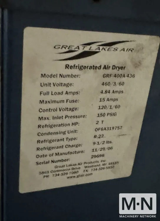 OverviewDescriptionGreat Lakes refrig. air dryer Great Lakes GRF-400A-436 Refrigerated Air Dryer |