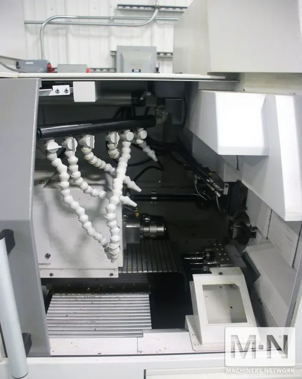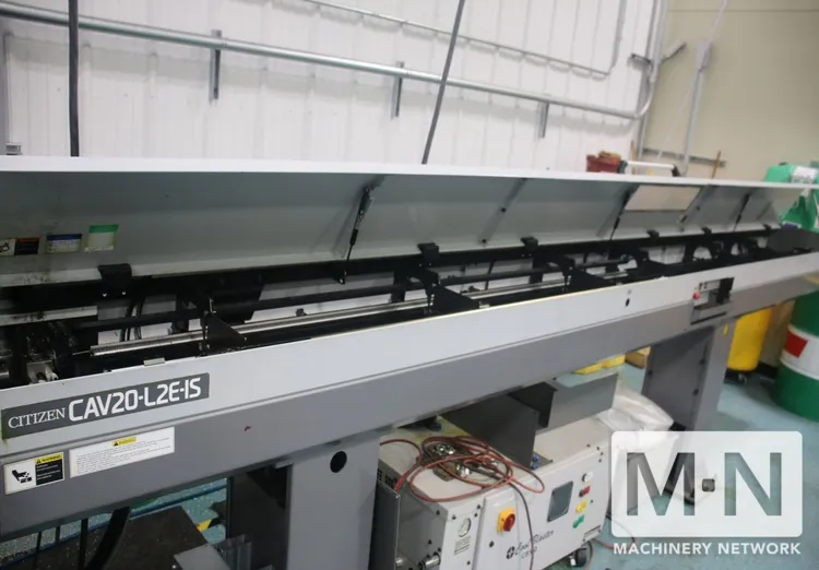 DescriptionCitizen L20E-2M8 CNC Swiss Lathe (2015) with 7-axis capability. Max machining dia. 0.79 in, turning length 7.9 in. Includes Citizen CNC controller, high-pressure coolant system, mist collector, chip conveyor, and automatic bar feeder. Citizen CNC Controller