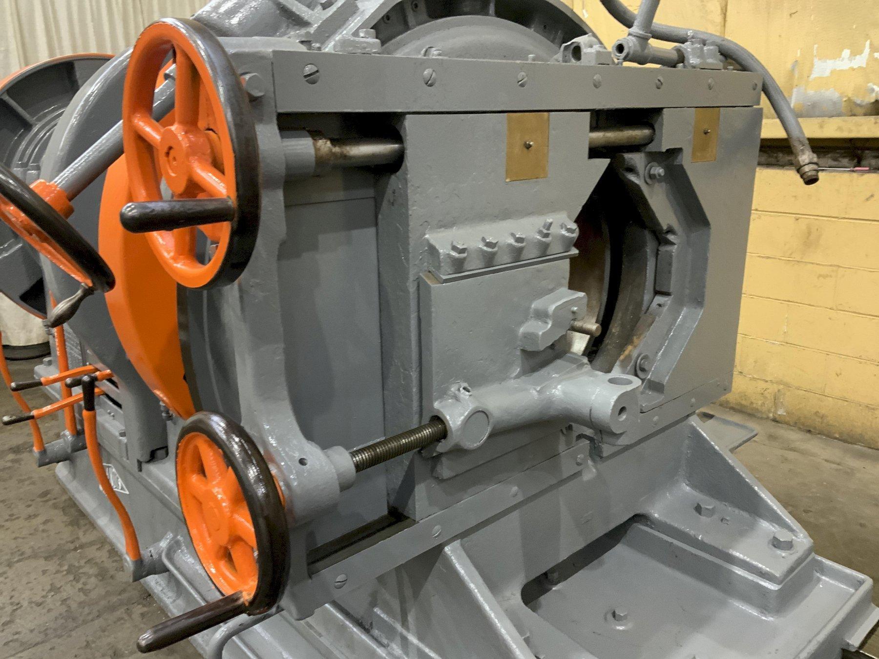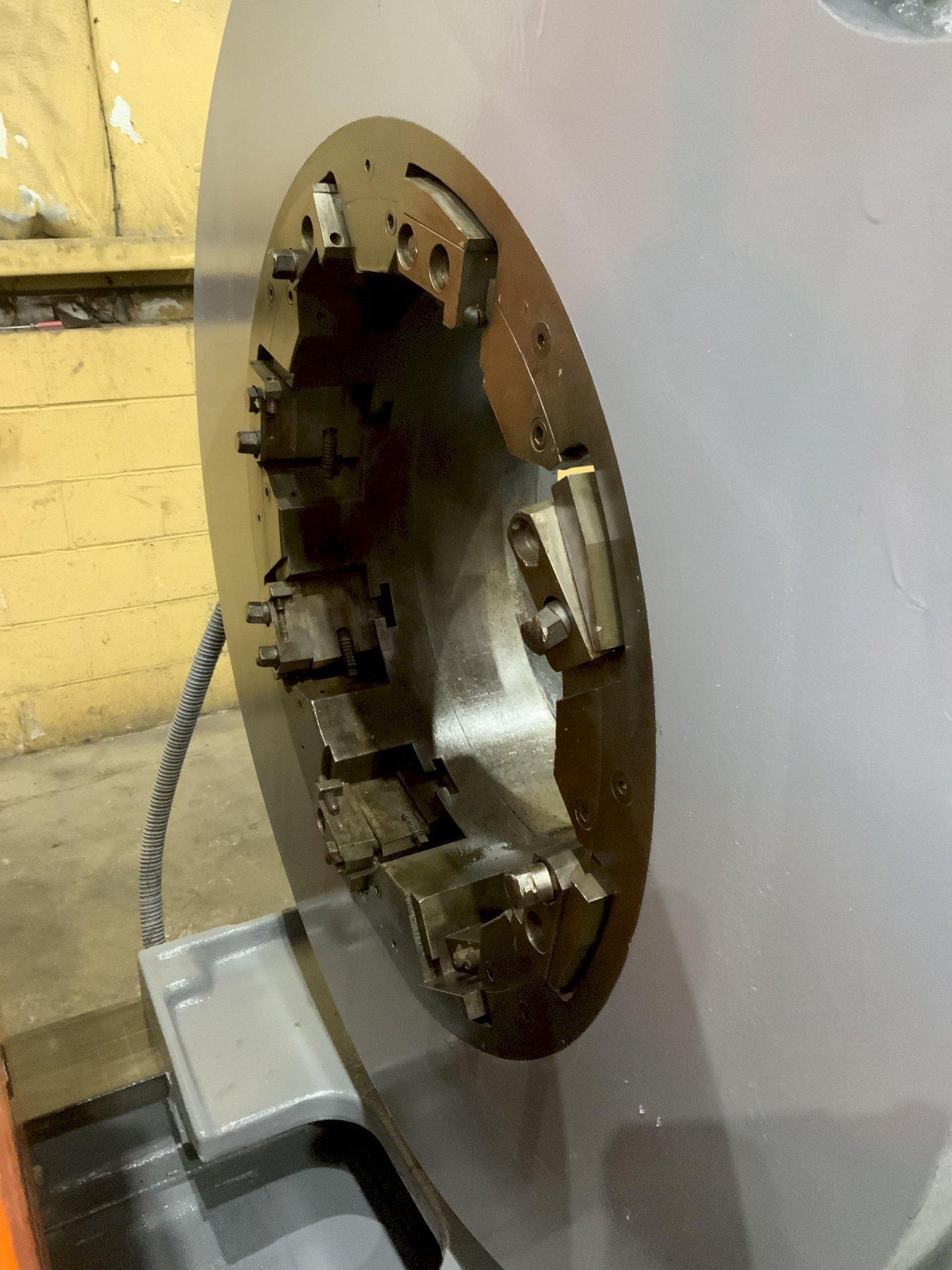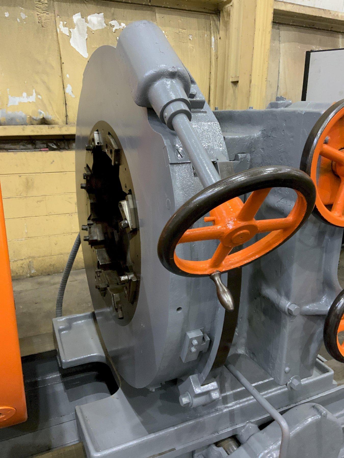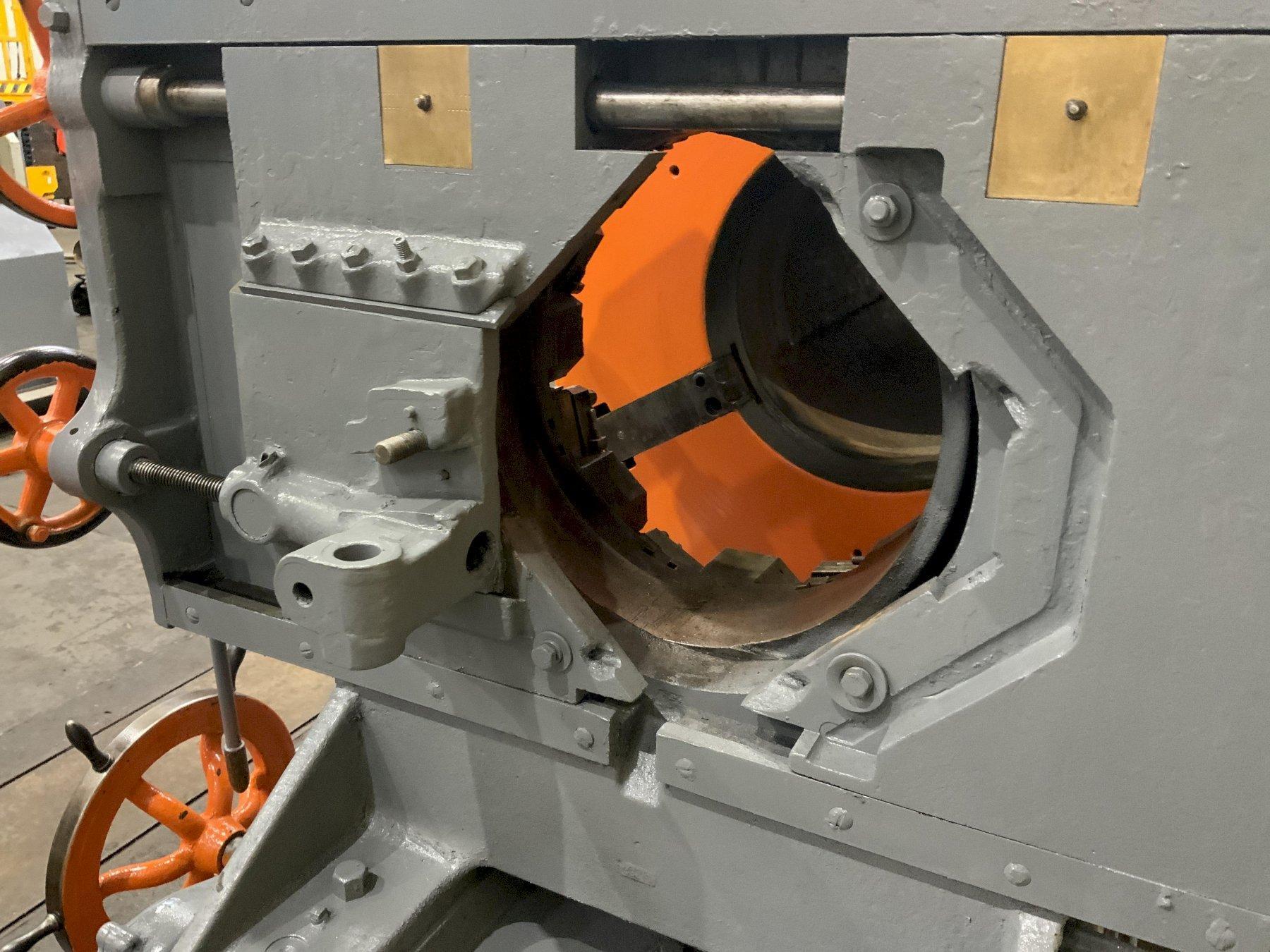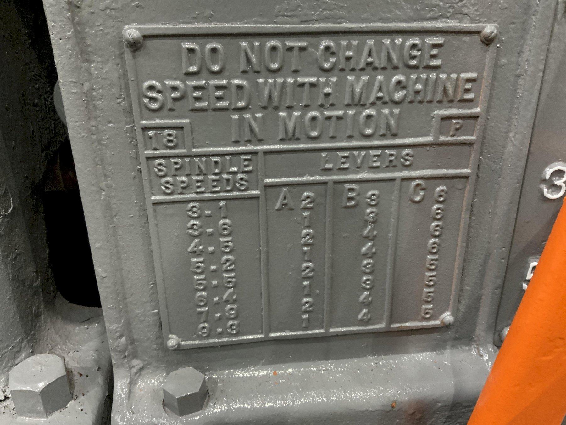 MODEL .. TYPE 18 SERIAL .. 14-2 CAPACITY .. 18-5/8" SPEEDS .. 3.1 TO 9.3 RPM (8) THROUGH HOLE .. 22-1/2" CHUCK DIAMETER .. 49" CUTTING HEAD MODEL .. 820-11-1 CUTTING HEAD TRAVEL .. 26" CUTTING HEAD CAPACITY .. 20" TO 10" MOTOR .. 25 HORSEPOWER |