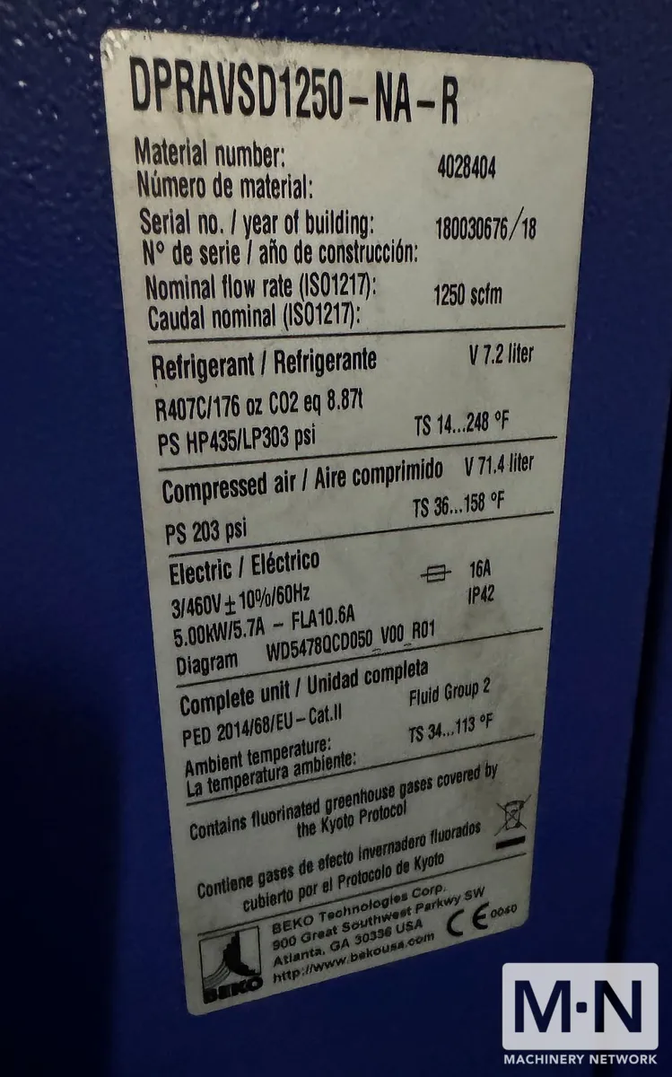 OverviewDescription1122 CFM,145 PSI, Drypoint DPRAVSD1250-NA-R RA Refrigerated Air Dryer Maestro PLC control