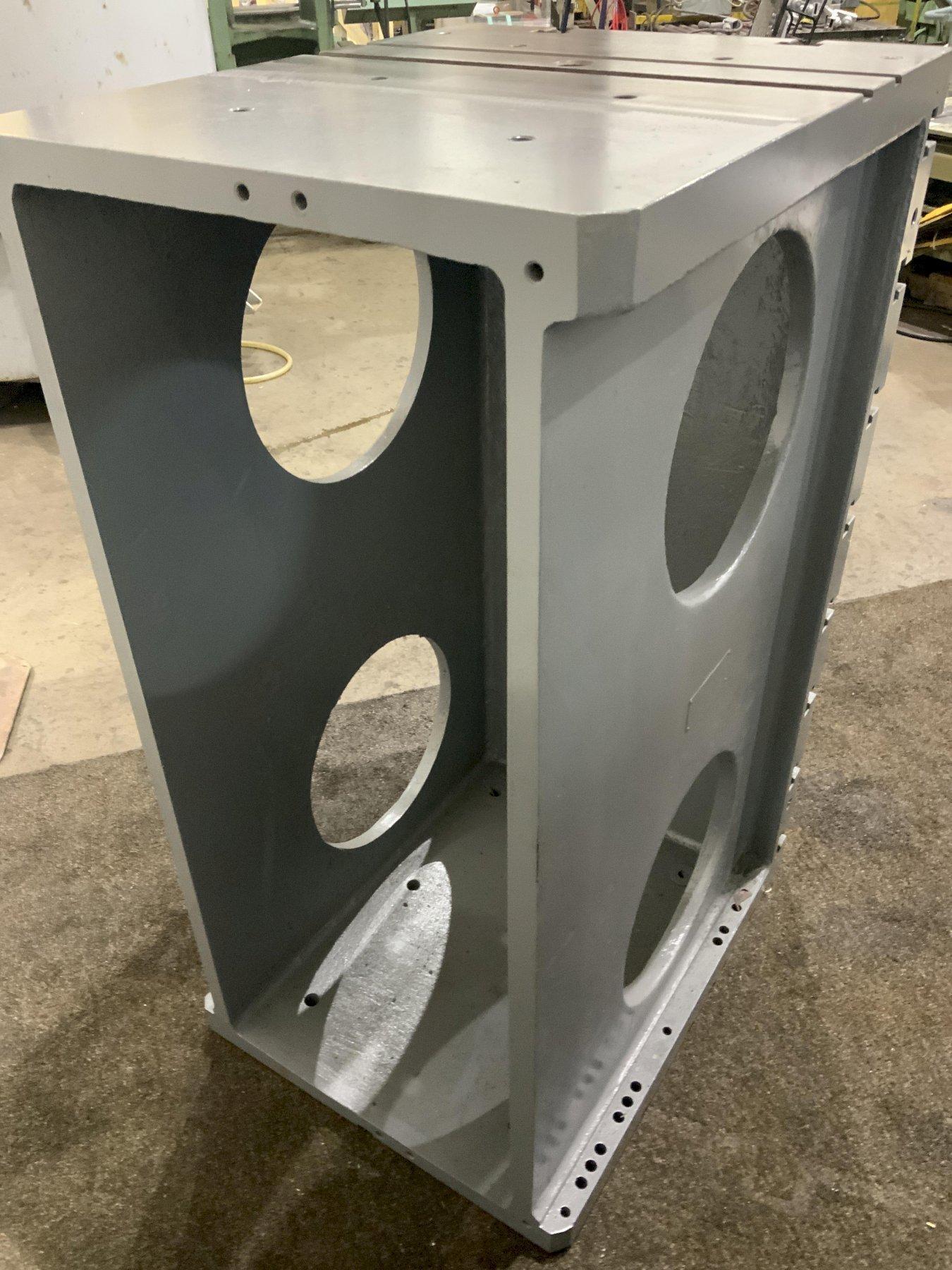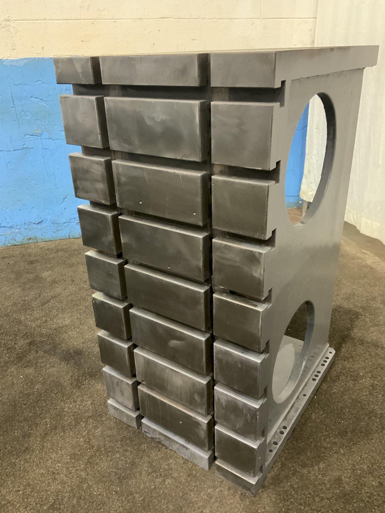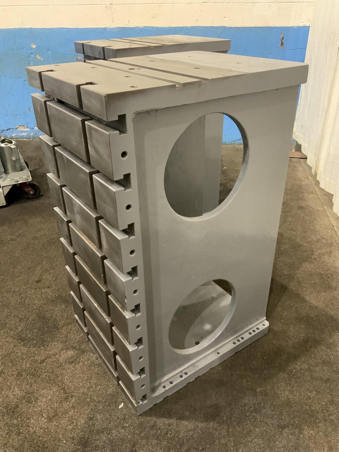 SERIAL ........................... 050-154-57 MODEL ................... 30 X 48 X 24 NUMBER OF PLATES ................ 2 WIDTH OF ANGLE PLATE ............ 24" LENGTH OF ANGLE PLATE ........... 30 HEIGHT OF ANGLE PLATE ........... 48" FACE THICKNESS .................. 3" NUMBER OF T SLOTS HORIZONTAL .... 8 T SLOT CENTER HORIZONTALLY ...... 6" T SLOT WIDTH AT TOP ............. 1-1/8" T SLOT DEPTH .................... 1-7/8" T SLOT WIDTH AT BOTTOM .......... 2" STACKABLE ....................... YES TOP AREA ................. 24" X 30" CAST IRON CONSTRUCTION .......... YES |