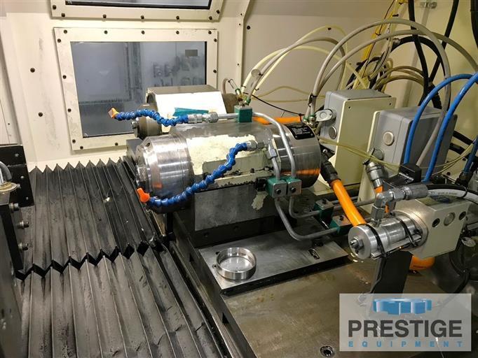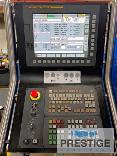 Max. External Diameter 6.9" Stroke Length 10" Work Head Swivel 30° Minimum Bore Diameter .40" Maximum Bore, Chucker 4" Maximum Bore, Shoe Centerless 5.5" Maximum Length of Bore 3" X-Axis Travel 2" X-Axis Resolution .000004" Z-Axis Travel 10" Z-Axis Resolution .000016" Work Speed, Shoe Centerless 1,850 RPM Shoe Centerless Drive Motor 1.5 HP Work Speed, Chucker 4,000 RPM Chucker Drive Motor 1 HP Maximum Spindle Speed 120,000 RPM Machine Weight 13,900 Lbs Equipped With: Fanuc 31i-B5 CNC Control In-Process Gauge System Poka-Yolk Part Load System CBN Face Grinding Wheel CBN Bore Grinding Wheel CBN OD Grinding Wheel CBN ID Grinding Wheel Hi-Frequency Rotary Diamond Dresser Shoe Bodies, 1 Set of Shoe Pads Shoe Centerless Fixture |