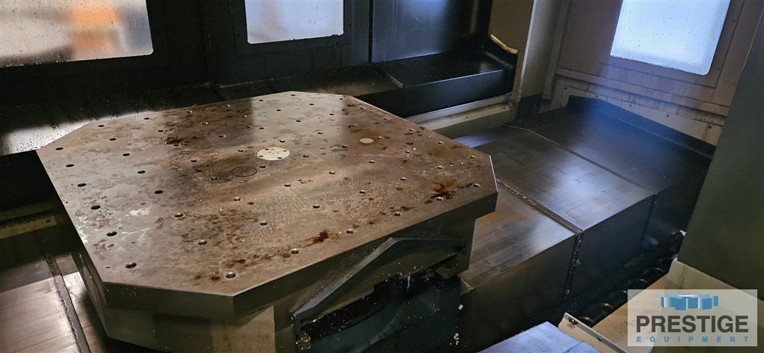 X-Axis Travel 82.7" Y-Axis Travel 59.1" Z-Axis Travel 59.1" Pallet Dimensions 49.2" x 49.2" Pallet Indexing 1 Degree Loading Capacity 13,200 Lbs Spindle Speeds 6,000 RPM Spindle Taper #50 Spindle Motor 34.6 HP Tool Capacity 60 ATC Rapid Traverse Rate (X/Y/Z) 944.88 IPM Cutting Feed Rate 472.44 IPM Approximate Machine Dimensions 415" x 230" Approximate Machine Height 163" Approximate Machine Weight 68,500 Lbs. Equipped With: Fanuc 31iMB CNC Control 60-Station Automatic Tool Changer 2-Station Automatic Pallet Changer Thru Spindle Coolant Chip Conveyor HOURS: Power On: 11,394 NOTE: Inspect In Plant Under Power! |
