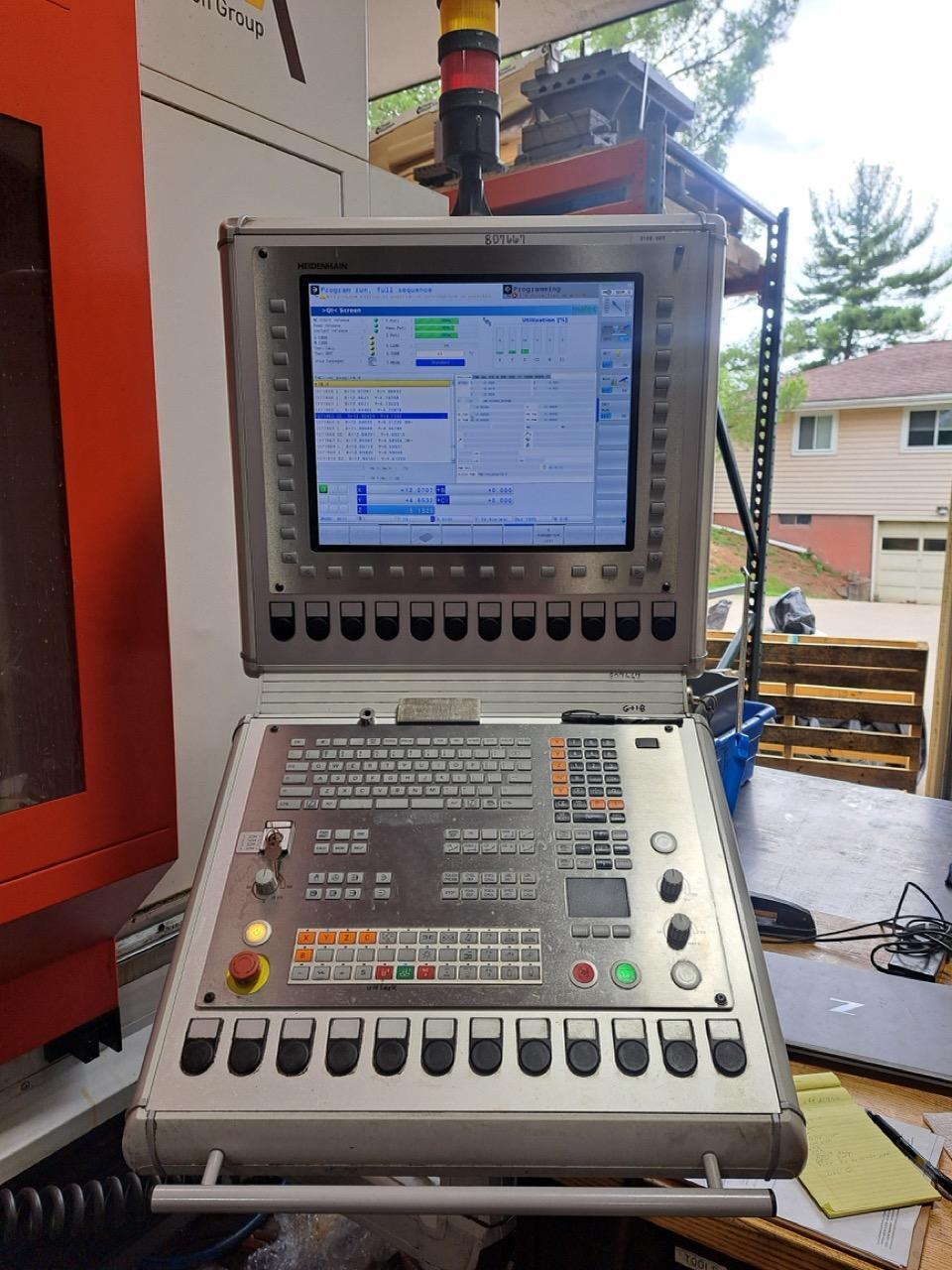All specifications are assumed to be correct but must be confirmed by the purchasing entity.,Equipped With: All specifications are assumed to be correct but must be confirmed by the purchasing entity.,Heidenhain TNC 640 Control NC swivel head, infinitely adjustable ±105° Continuous or indexed positioning with clamping 12,000 RPM Spindle Machine Spindle with HSK100 Tool Interface High Pressure Coolant Machine Anchoring Additional Support for Machine Bed Chip Conveyor Wash Gun Work area lighting Software Option KinematicsOpt Internal Coolant Supply CNC Rotary Table SKH-NC 8/1000 Direct Measuring System for Rotary Table 3D Wireless Touch Probe Tool Breakage Detection & Length Measurement Collision Monitoring System 3-Color Signal Light All specifications are assumed to be correct but must be confirmed by the purchasing entity. |