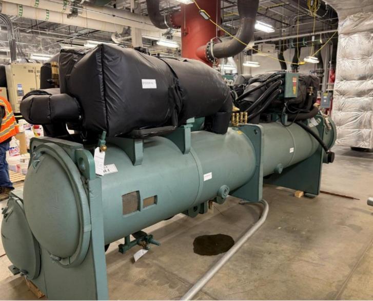 All specifications are assumed to be correct but must be confirmed by the purchasing entity.,MODEL# YVWAMBM3EE —A water-cooled, high-efficiency chilling system utilizing variable-speed-drive (VSD) technology to optimize performance, reduce energy consumption by up to 30%, and handle high-lift applications. The VSD continuously tunes compressor speed to meet exact load requirements. All specifications are assumed to be correct but must be confirmed by the purchasing entity.,—Suitable for various water-cooled, commercial, and industrial cooling applications. All specifications are assumed to be correct but must be confirmed by the purchasing entity.,BRIEF SPECIFICATIONS 333 GPM with a heating capacity of 2,667 MBH 250 nominal cooling tons @153 gal/min on the chilled-water side All specifications are assumed to be correct but must be confirmed by the purchasing entity.,Electrical: 460V, 3 phase, 368 (amp min)/450 (max breaker) All specifications are assumed to be correct but must be confirmed by the purchasing entity.,Refrigerant: R-513A All specifications are assumed to be correct but must be confirmed by the purchasing entity. |