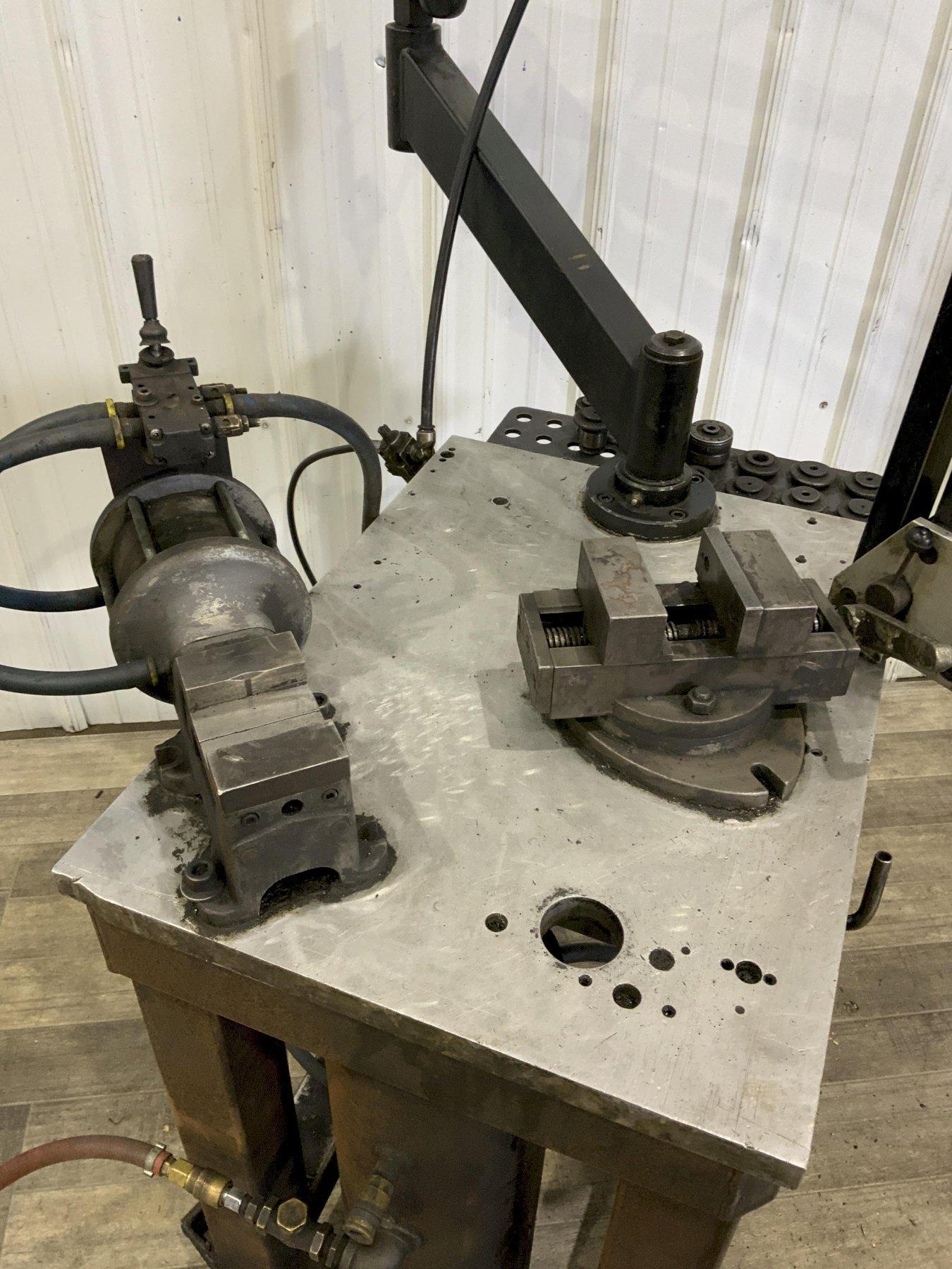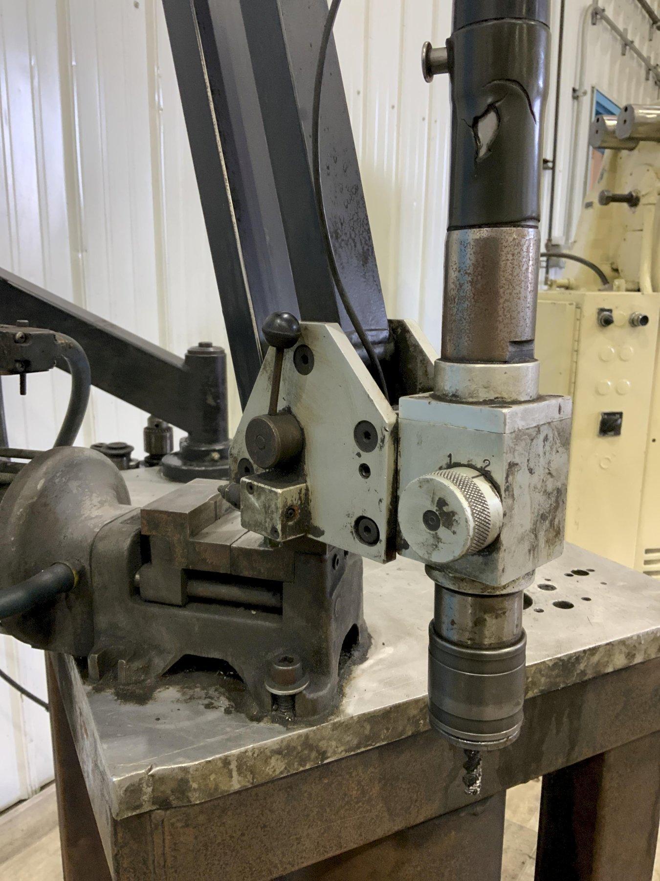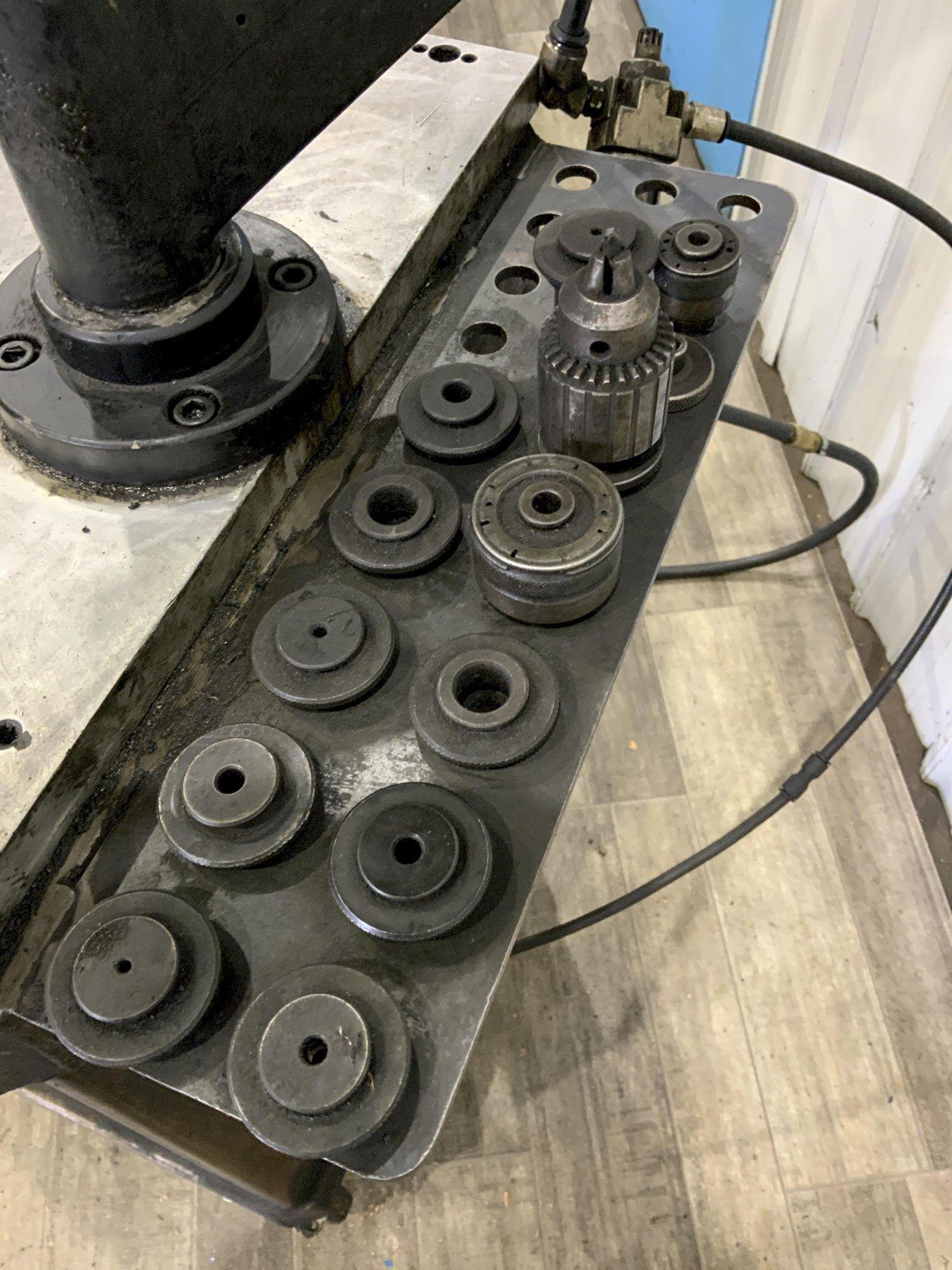 SERIAL ............... 016525 MODEL ................ RNR 20 YEAR NEW ............. 2008 TAPPING CAPACITY ..... 1/4" TO 7/8" MAXIMUM REACH ................ 17" TO 73" RPM .................. 100/400 TORQUE ............... 78/28FT/LBS AIR .................. 90 PSI STAND AREA ........... 19 "X 37" SWIVEL VISE .......... YES PNEUMATIC VISE ....... YES TOOLING .............. YES |