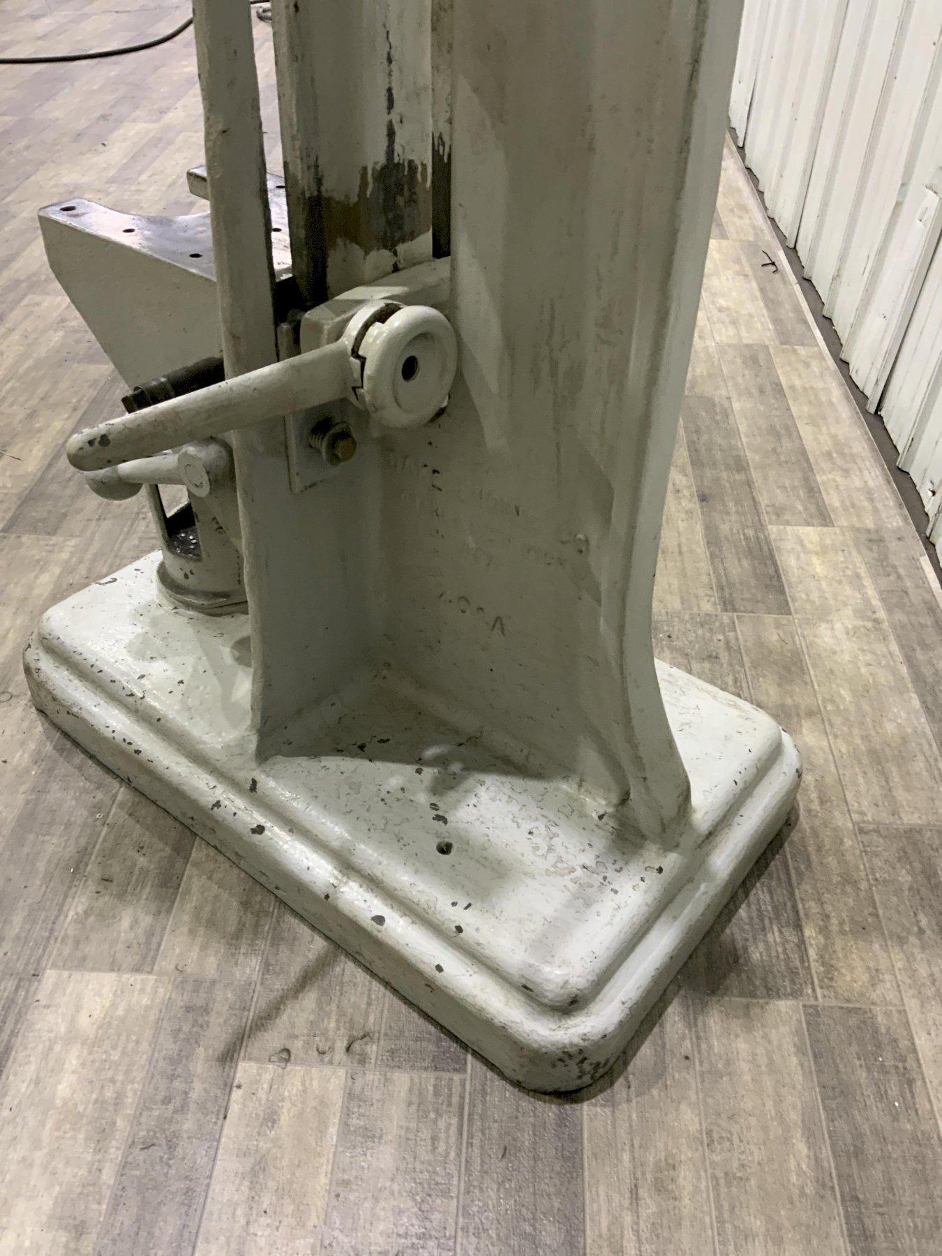 MODEL ................................. 4 CAPACITY .............................. 12 TONS LARGEST DIAMETER WORK ................. 20" LARGEST DIAMETER ARBOR ................ 5-1/4" MAXIMUM WORK HEIGHT ON TABLE .......... 26" RAM SIZE .............................. 2" X 2" X 24" THROAT ................................ 10" D-SLOT IN TABLE ....................... 5-1/2" X 5-1/2" HAND CRANK ADJUSTABLE TABLE HEIGHT .... YES HAND LEVER RAM ACTUATION .............. COMPOUND |