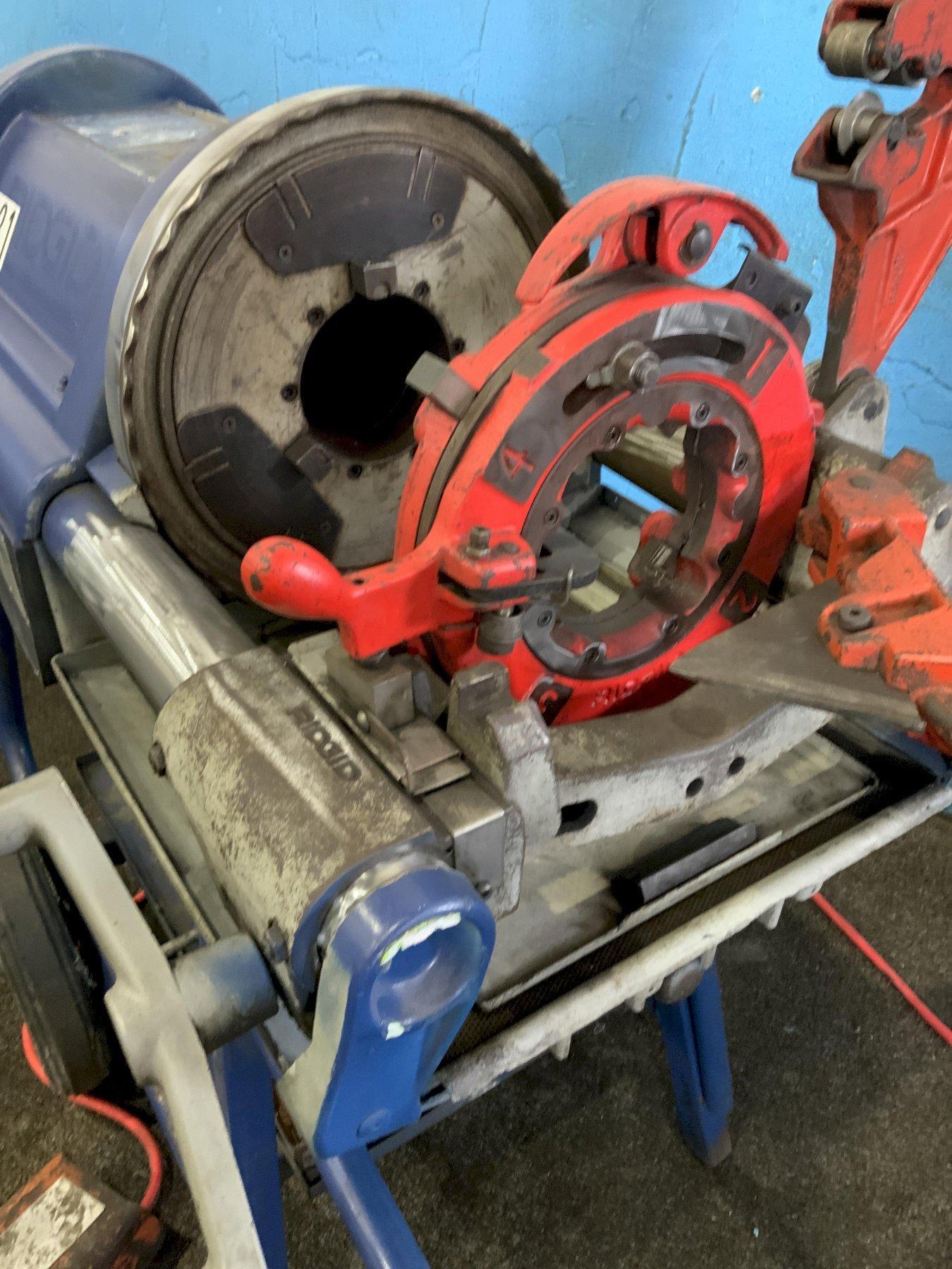 SERIAL ............................... EB011834 MODEL ................................ 1224 PIPE CAPACITY ........................ 1/4" TO 4" BOLT CAPACITY ........................ 1/2" TO 2" THREADING SPEEDS ..................... (2) 12 & 36 RPM REAMING ATTACHMENT ................... YES CUTTER ATTACHMENT .................... YES RECEDING DIE HEAD .................... 2-1/2" TO 4" FORWARD/ REVERSING ................... YES ELECTRIC FOOT TRIP ................... YES ON ROLL AROUND PORTABLE STAND ........ YES PHASE ................................ 1 VOLTAGE .............................. 110 MOTOR ................................ 1-1/2 HORSEPOWER |
