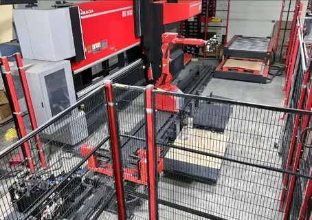 INCLUDES: Amada AMNC 3i Touchscreen Control, 7 - Axis (6 - Axis Motion & 1 - Axis of Travel) Amada HGRobot 020 / Yaskawa, DX100 Robotic Arm, Automatic Tool Changer, Automatic Gripper Changer, Roller Table / Conveyor for Finished Parts and Hybrid Drives Systems (Electric & Hydraulic)