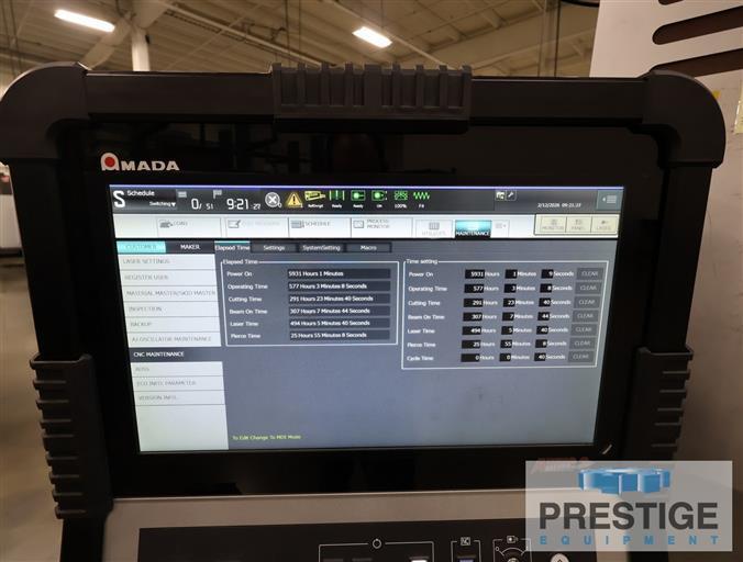 Maximum Laser Output 3 KW X-Axis Carriage Travel 121" Y-Axis Laser Head Travel 61" Z-Axis Laser Head Travel 3.93" Maximum Sheet Size 60" x 120" Max. Material Thickness, Mild 1" Max. Material Thickness, Stainless .5" Max. Material Thickness, Aluminum .5" Max. Positioning Speed, X & Y Axis 4,724 IPM Repeatability +/-0.0002" Max. Material Weight 2,000 Lbs. Equipped With: Amada AMNC 3i CNC Control with Color LCD Touchscreen Dual Pallet Shuttle Tables Amada Ensis 3000 3KW Oscillator Automatic Nozzle Changer Orion Chiller Cold Series X-Flo Dust Collector HOURS: ONLY 291 CUTTING HOURS NOTE: Inspect In Plant Under Power Auction Message: To Be Sold at Auction 3/19 - CVD Corp View The Auction |