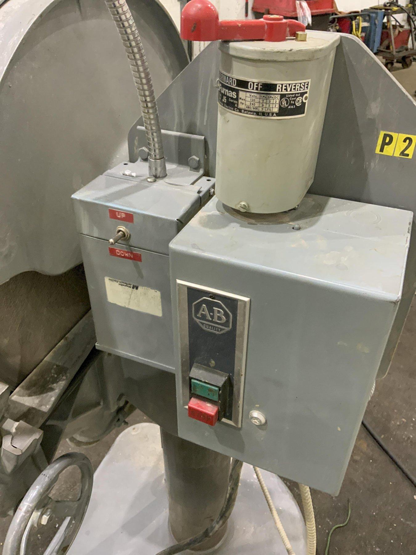 SERIAL ................. 861 DISC DIAMETER .......... 24" AREA OF TABLE .......... 31" X 12" TABLE TILTS ............ 30 DEGREES UP 45 DEGREES DOWN TABLE ELEVATION ........ 11" FORWARD & REVERSING .... YES PHASE .................. 3 MOTOR HORSEPOWER ....... 3 |