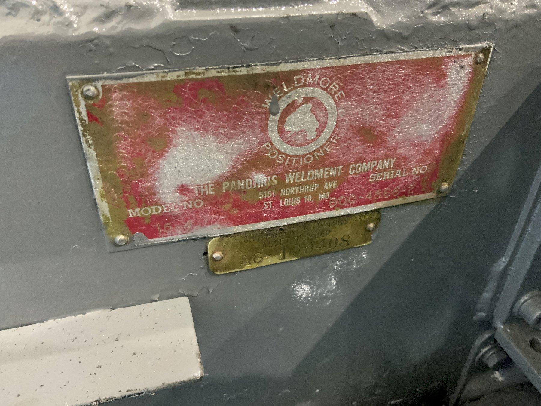 SERIAL ...................... 800-4566-2 MODEL ....................... 15-4 LOAD CAPACITY ............... 1500 LBS @ 4" AREA OF TABLE .................. 24" X 24" LOAD ECCENTRICITY ........... 4" ROTATION TORQUE ............. 6000" LBS TILT RANGE .................. 0 - 135 DEGREES MOTOR ....................... 115 V / 60/3 ADJUSTABLE HEIGHT BASE ...... YES FOOT PEDAL .................. YES GRIPPER CHUCK ............... 18" DIAMETER PENDANT CONTROL ............. YES PHASE .................... 1 VOLTAGE ................ 110 MOTOR HORSEPOWER .......... 1/2 |