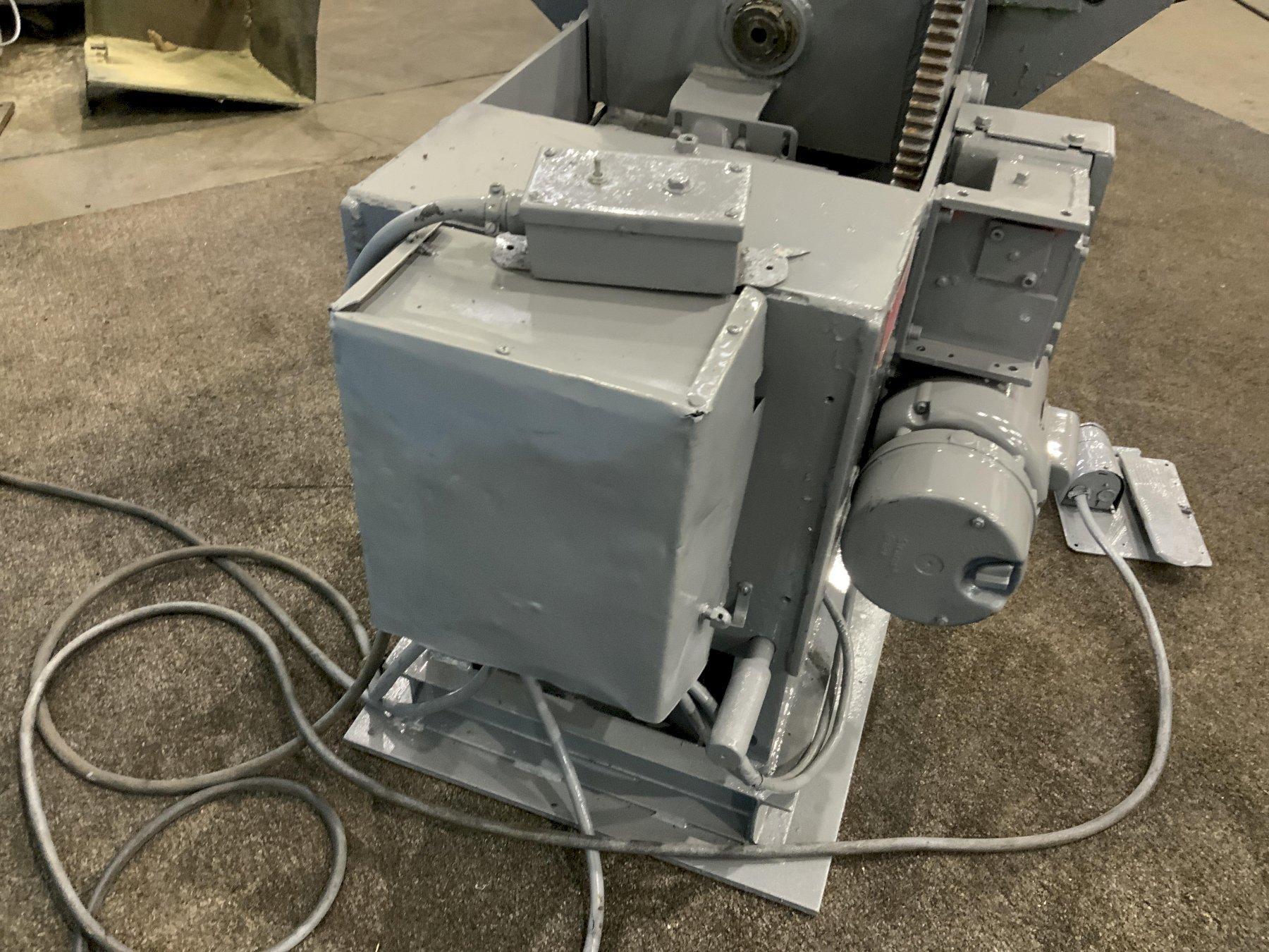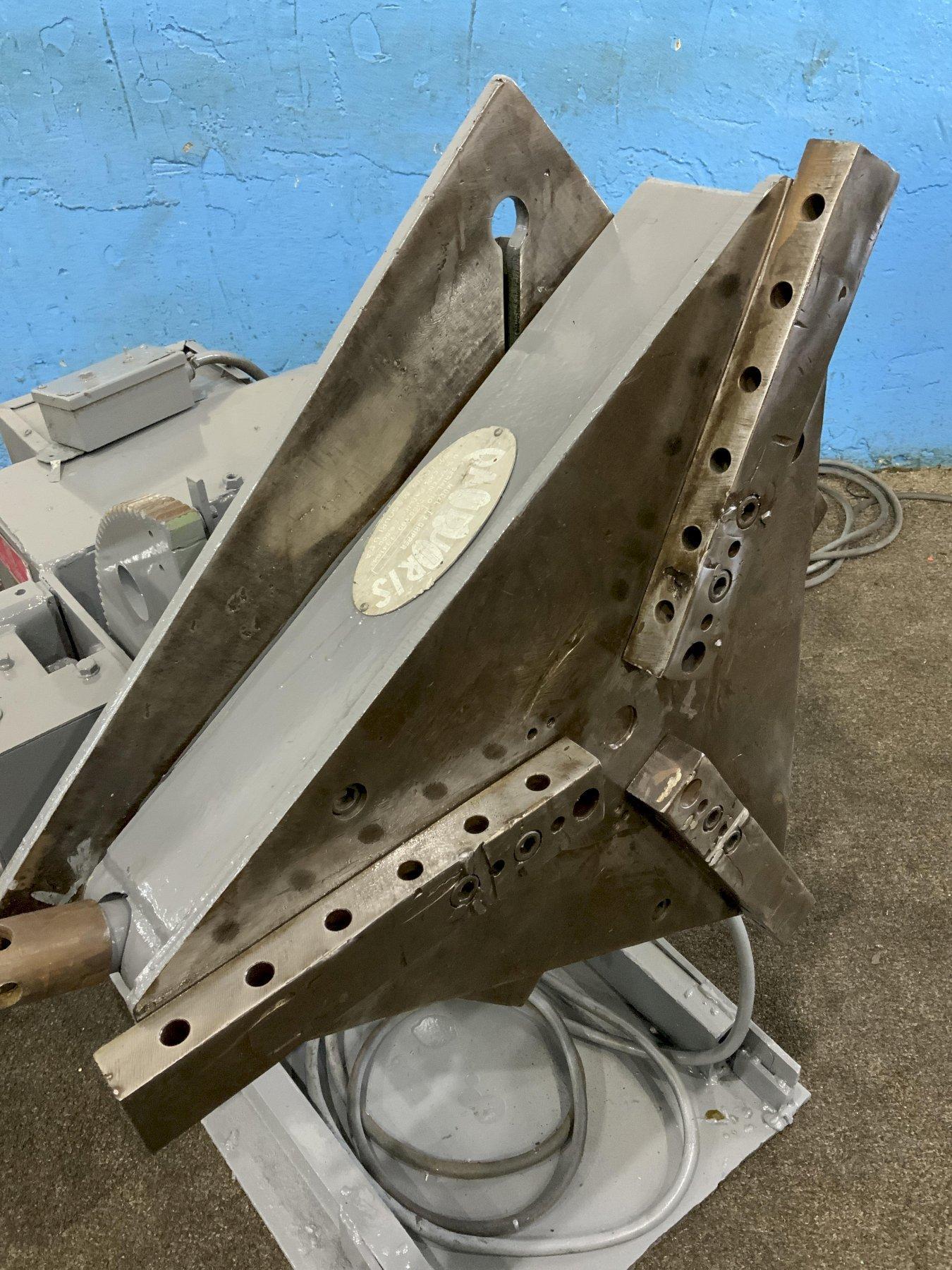SERIAL ...................... 800-3868-5 MODEL ....................... 15-4 LOAD CAPACITY ............... 1500 LBS @ 4" LOAD ECCENTRICITY ........... 4" ROTATION TORQUE ............. 6000" LBS AREA OF TABLE ................................. 24" X 24" TILT RANGE .................. 0 - 135 DEGREES MOTOR ....................... 115 V / 60/3 ADJUSTABLE HEIGHT BASE ...... YES FOOT PEDAL .................. YES CRIPPER CHUCK ............... MODEL TJ MOTOR HORSEPOWER ............ 1/2 |