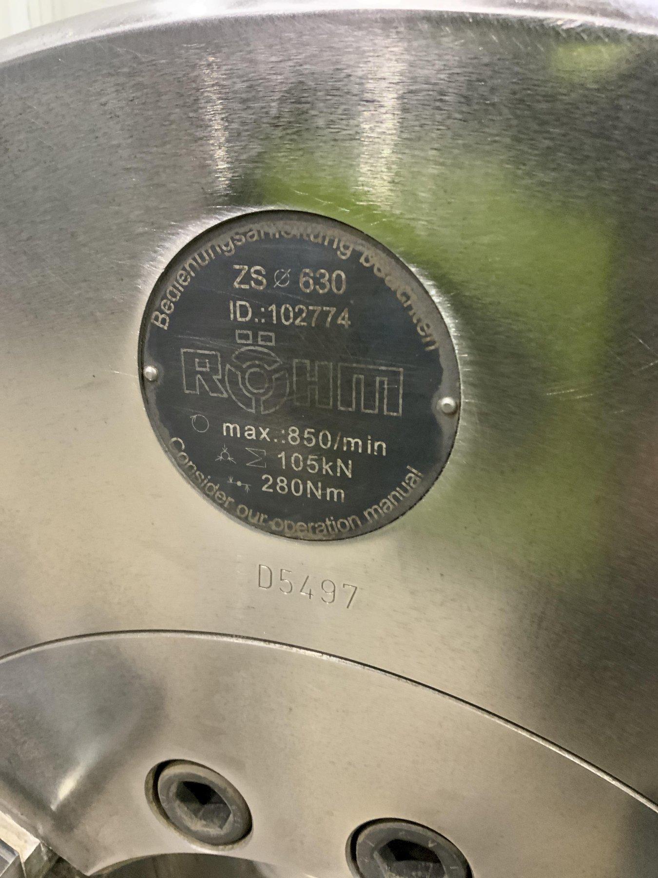 SERIAL ........................ 102774 MODEL ......................... ZS630 CHUCK DIAMETER ................ 24-3/4" CENTER HOLE ................... 7-1/2" CHUCK WIDTH ................... 5" REMOVABLE TOP JAW ............. YES CLAMPING FORCE ................ 23,604 FORGED STEEL BODY ............. YES BACK PLATE .................... A-20 CONDITION ..................... BRAND NEW NEVER USED |