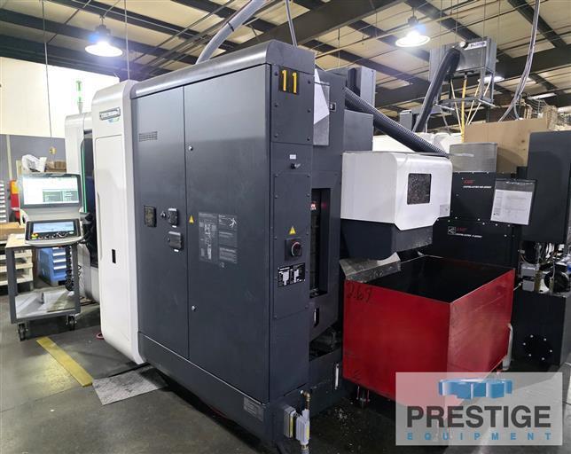 X-Axis Travels 22.047" Y-Axis Travels 22.047" Z-Axis Travels 26" Number of Pallets 2 Pallet Size 15.7" x 15.7" Pallet Indexing .001 Degree Pallet Load Capacity 880 Lbs. Spindle Speeds 20,000 RPM Spindle Taper CAT 40 Spindle Drive Motor 50 HP Rapid Traverse 2362 IPM Equipped With: DMG Mori Celos Ergoline Touch CNC Control 20,000 RPM High Speed Spindle (2) 15.7" x 15.7" Pallets with Auto Pallet Changer Full B-Axis Rotary Table 120-Position Automatic Tool Changer (Tooling not included) Though Spindle Coolant Chipblaster F-Series High Pressure Coolant System In-machine measuring system (spindle) & Tool breakage detection (Magazine) External Chip Conveyor |
