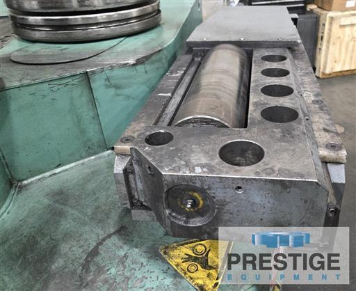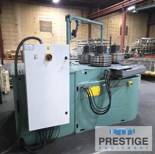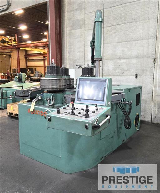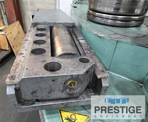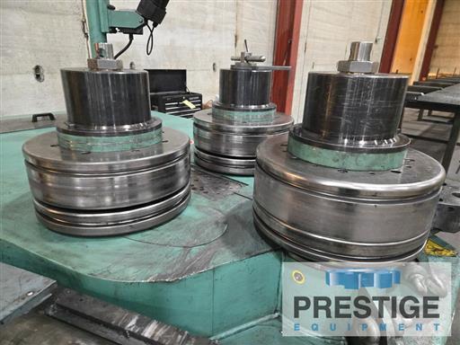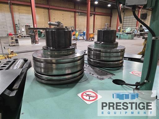 Angle Bending Capacity (Leg Out) 6" X 6" X 5/8" Angle Bending Capacity (Leg In) 5" X 5" X 3/4" I-Beam & Channel Capacity 12" Flat Iron On Flat 1-3/4" X 10" Flat Iron On Edge 1-1/2" x 5" Square Bar Capacity 3.5" Diameter Of Shafts, top/lower 7.1"/6.3" Equipped With: Siemens Simatic HMI Touch Panel With Roundo wCNC4 System Vertical bending shafts, to roll horizontally Hydraulic infinitely variable drive on all three rolls Automatic compensation for difference in speed between top & lower rolls Hydraulic adjustment of the lower rolls Digital displays showing the positions of the lower rolls Fully hydraulic adjustment of the guide rolls (in 6 directions) Digital displays showing the height positions of the guide rolls Emergency stop palm buttons. Auction Message: To Be Sold at Auction 4/14 - Shaped Steel Inc, Liberty Missouri View The Auction |