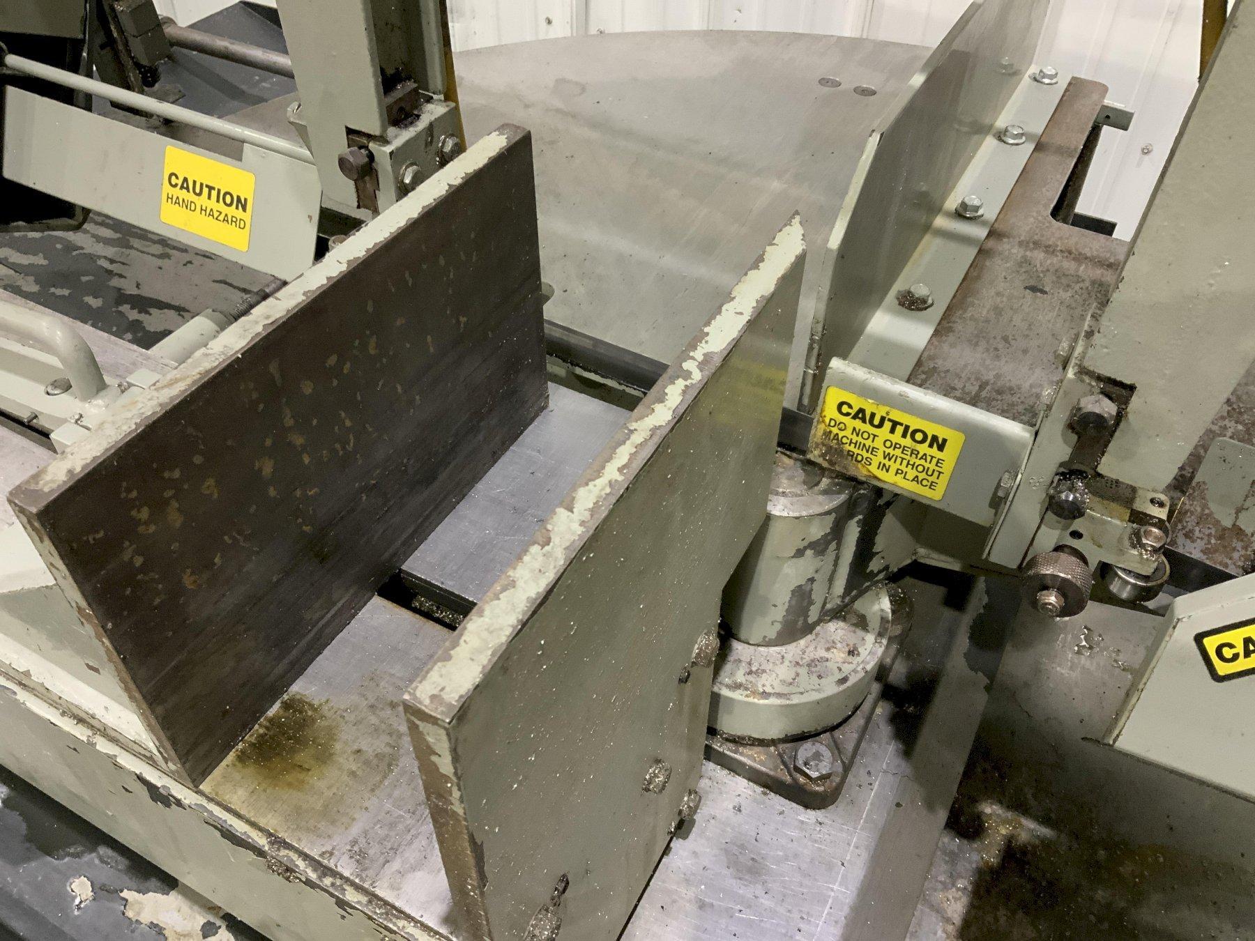 SERIAL ................................ 6930 MODEL ................................. 1316S YEAR NEW .............................. 2017 CAPACITY @ 90 ......................... 13" X 16" CAPACITY @ 60 ......................... 8-1/2" X 8" CAPACITY @ 45 ......................... 13"X 11-12" CAPACITY ROUNDS ....................... 13" BLADE SPEEDS (VARIABLE) ............... 70 TO 375 SFPM WIDTH OF BLADE ........................ 1" LENGTH OF BLADE ....................... 12'6" SWIVEL HEAD ........................... YES FEED CONTROL .......................... HYDRAULIC HEIGHT FLOOR TO TOP OF BED ............ 29" COOLANT ............................... YES AUTOMATIC SHUT OFF .................... YES POWERED BLADE BRUSH ................... YES MOTOR ................................. 3 HORSEPOWER |