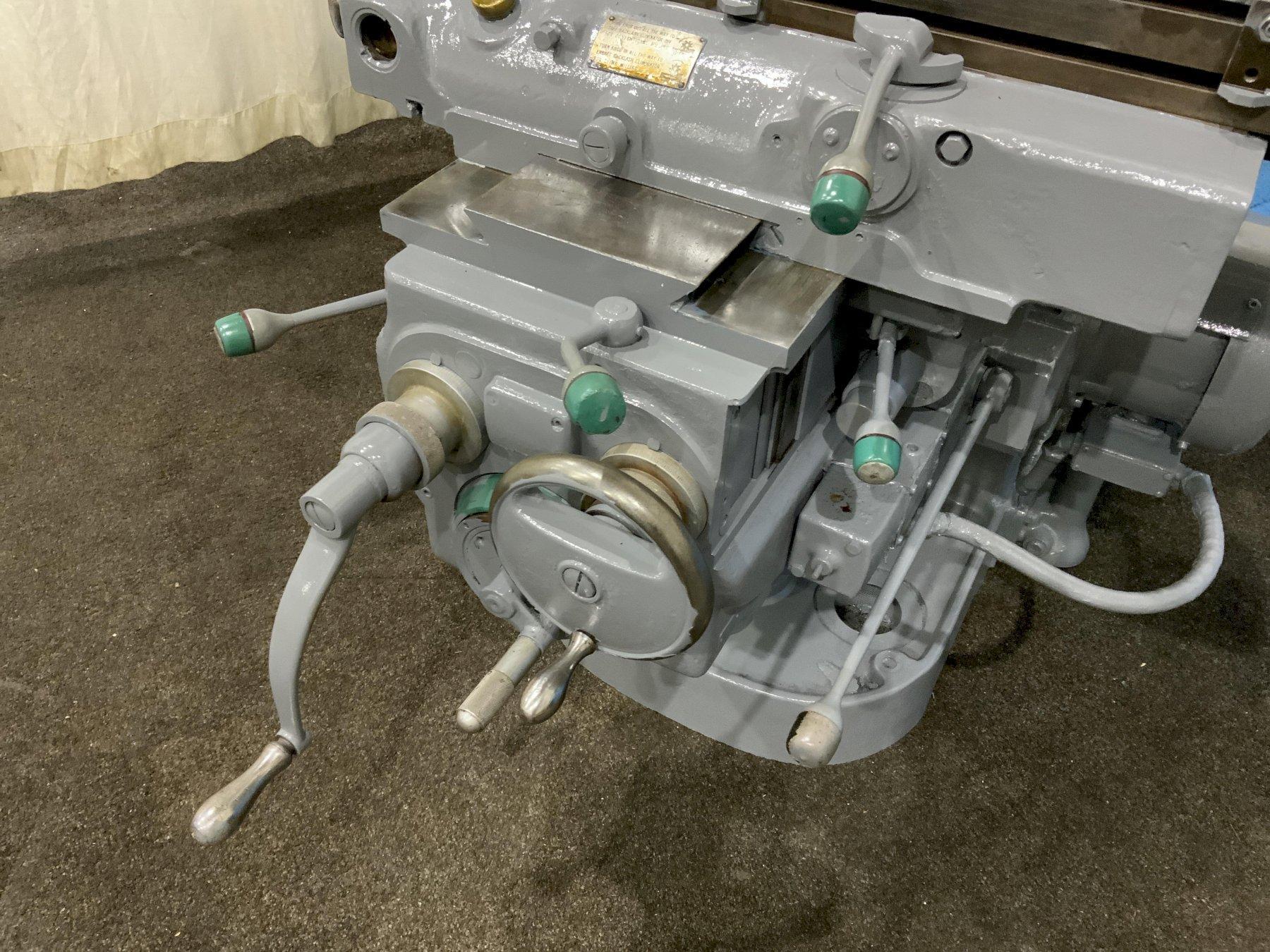 SERIAL ............................... #2J23P5L-7 MODEL ................................ 3 AREA OF TABLE ........................ 60" X 12" SPINDLE SPEEDS ....................... (16) 35 TO 1500 RPM LONGITUDINAL & CROSS FEEDS ........... (16) 1/4 TO 30 IPM VERTICAL FEEDS ....................... (16) 1/8 TO 15 IPM LONGITUDINAL TRAVEL .................. 32" CROSS TRAVEL ......................... 10" VERTICAL KNEE TRAVEL ................. 14" TAPER IN SPINDLE ..................... #50 NS RAPID TRAVERSE ....................... YES COOLANT .............................. YES HORSEPOWER MAIN MOTOR ................ 7.5 |
