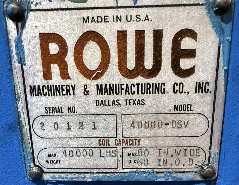 16,000 LB X 40" ROWE 16040-DSJ MOTORIZED UNCOILER. STOCK # 0219026
