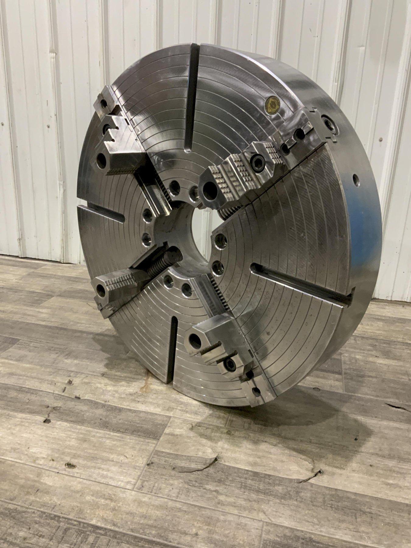 SERIAL ............................... 1-5290/2016 MODEL ................................ 4317-32"-11A2-DIN YEAR NEW .................. 2016 DIAMETER OF CHUCK .................... 32' NUMBER OF JAWS ....................... 4 JAW STYLE ....................... 2 PIECE THICKNESS OF CHUCK ................... 5.75" HOLE THROUGH CHUCK ................... 7" MOUNTING BACK ON CHUCK ............... A2-11 BODY MATERIAL .................. STEEL |