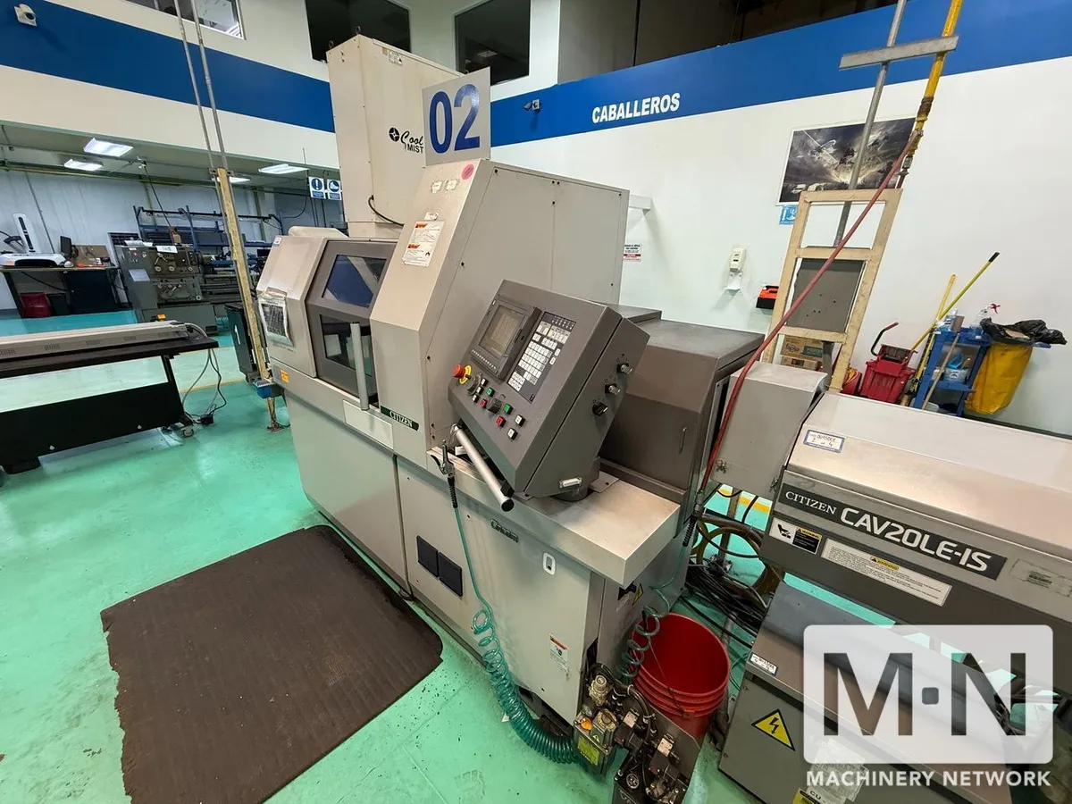 DescriptionCitizen Cincom L20E-2M9 CNC Swiss Lathe from 2015, featuring Mitsubishi 70LPC-V CNC control, high-pressure coolant system, Cool Blaster, and automatic bar feeder. With a 0.787" spindle hole and 144" max machining length, operates at 10000 rpm. Mitsubishi 70LPC-V CNC Control