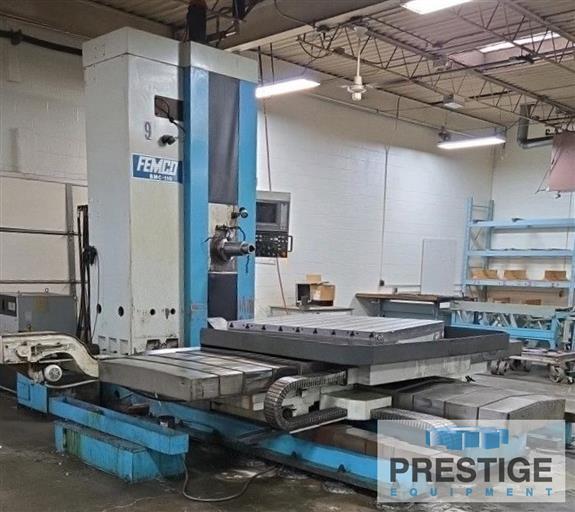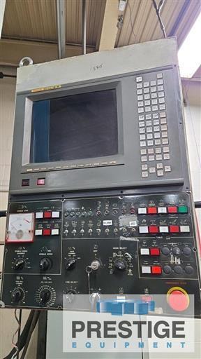 Spindle Diameter 4.33" Spindle Taper CAT 50 Vertical Head Travel, Y-Axis 70.87" Table Travel, X-Axis 78.74" Spindle Travel, W-Axis 19.65" Saddle Travel, Z-Axis 66.93" Built in Rotary Table 56.69" x 62.99" Table Index 1 Degree Table Load Capacity 13,889 Lbs. Rapid Traverse: X/Y/Z Axis 394 IPM Spindle Speeds (2 Ranges) 5-2500 RPM Maximum Tool Weight in Tool Changer.... 55 LBS 55 LBS Approximate Dimensions 258" x 216" Approximate Height 147" Approximate Weight 41,887 Lbs. Equipped With: Fanuc 18-M CNC Control Built-In Rotary Table Hardened Bed Ways 29/35 HP Spindle Drive Motor 220/3/60 Telescoping Way Covers Chip Conveyor |