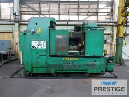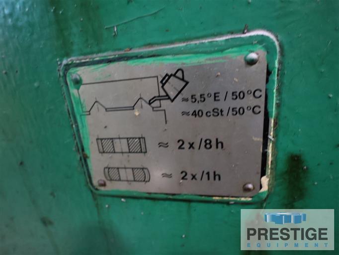 Maximum Gear Diameter 1250 mm Masimum Diametral Pitch 2 Module 12 Max. Hob Diameter 220 mm Hob Arbor Size 2" Hob Speed 200 RPM Table Diameter 950 mm Max. Hobbing Length 585 mm Feed Range, Axial 0,30 – 6 mm/min Feed Range, Radial 0.09 – 1.8 mm/min Feed Range, Tangential 0.126 – 2.53 mm/min Hob Spindle Speeds 32-200 RPM Maximum Tool Length 260 mm Maximum Tool Diameter 220 mm Minimum Number of Milling Teeth 12 Approximate Weight 14,000 kg Equipped With: Hob Arbor Single Indexing Differential Swing Away Tailstock Chip Conveyor, Coolant Change Gears Spare Arbors LOCATION: Warren, Michigan |