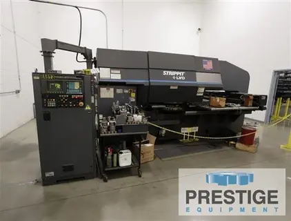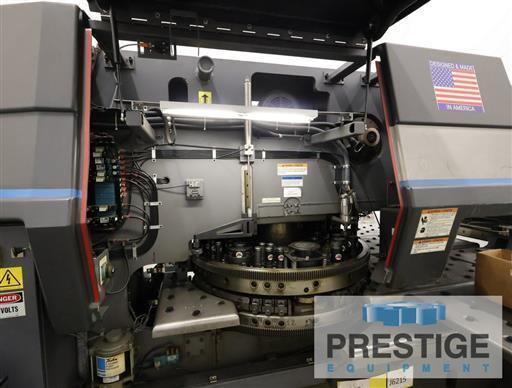 Tonnage Capacity 33 Tons Nominal Workpiece Size 40" x 50" Maximum Workpiece Weight 320 Lbs. Maximum Sheet Thickness .250" Maximum Punch Diameter 3.5" Hits Per Minute On 1" Moves 250 Axis Speed 3,200 IPM Estimate Weight 36,525 Lbs. Equipped With: GE Fanuc OP CNC Control "Smart Stroke" Servo Hydraulic Press Drive 40 Station Turret (4)Auto Index Stations Automatic Sheet Repositioning Loaded with Tooling |