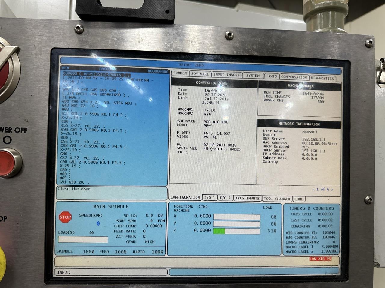 Haas VF-3 CNC VMC, 2011 – WIPS, 40 Station Side-Mount, High-Pressure Coolant